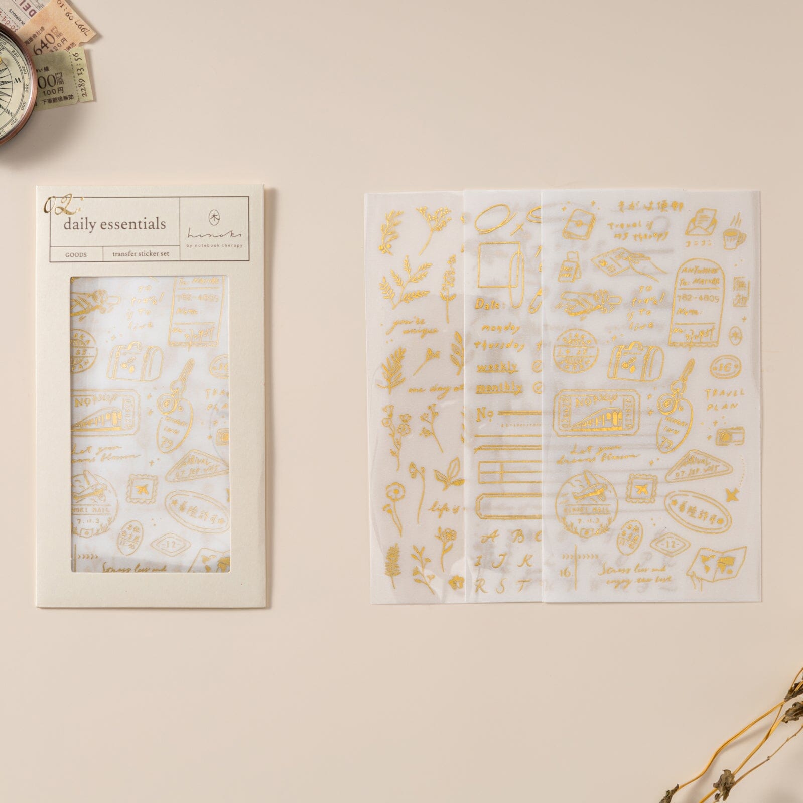 Hinoki - ‘Daily Essentials’ Gold Foil Print-On Sticker Set
