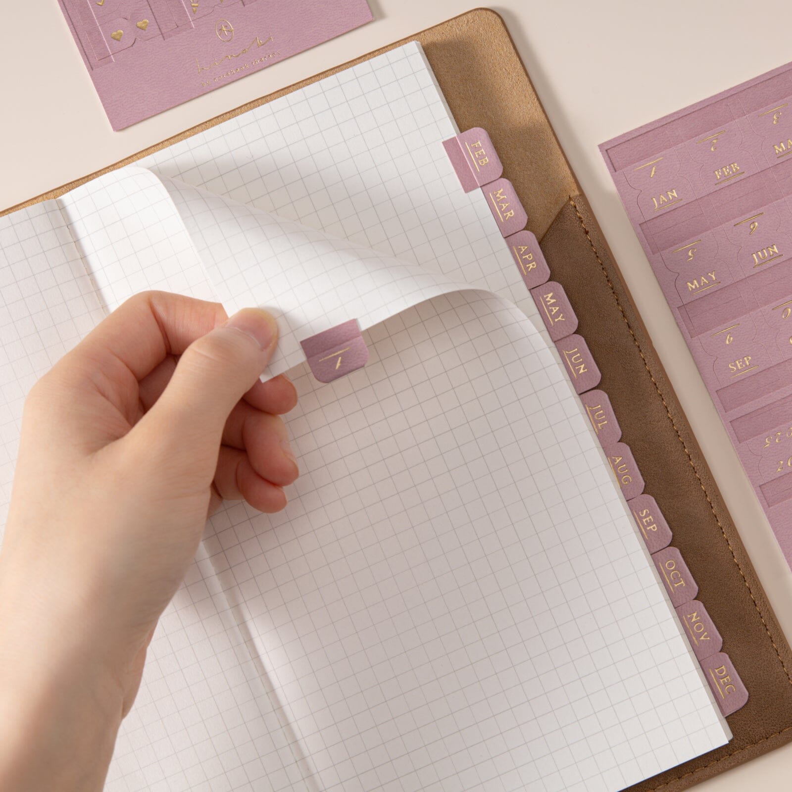 - 2x Premium Index Sticker Sheets - made with vegan leather and gold foil details.