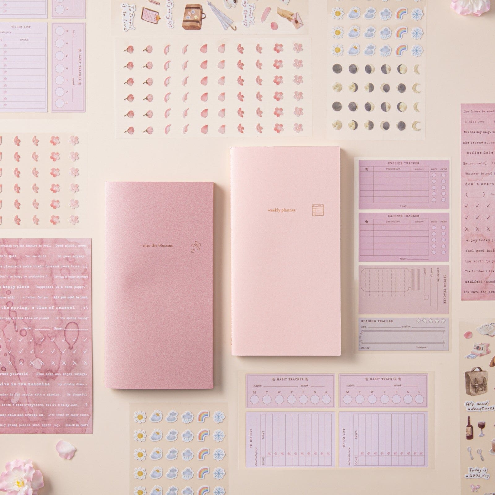 Our exclusive Into the Blossom Hinoki Bundle #2 includes two Hinoki products: our Hinoki - No.01 Travel Notebook and our brand new Hinoki - ‘Into the Blossom' Mixed Insert + Sticker Set. Enjoy an invigorating day of journaling under the sea of pink petals.