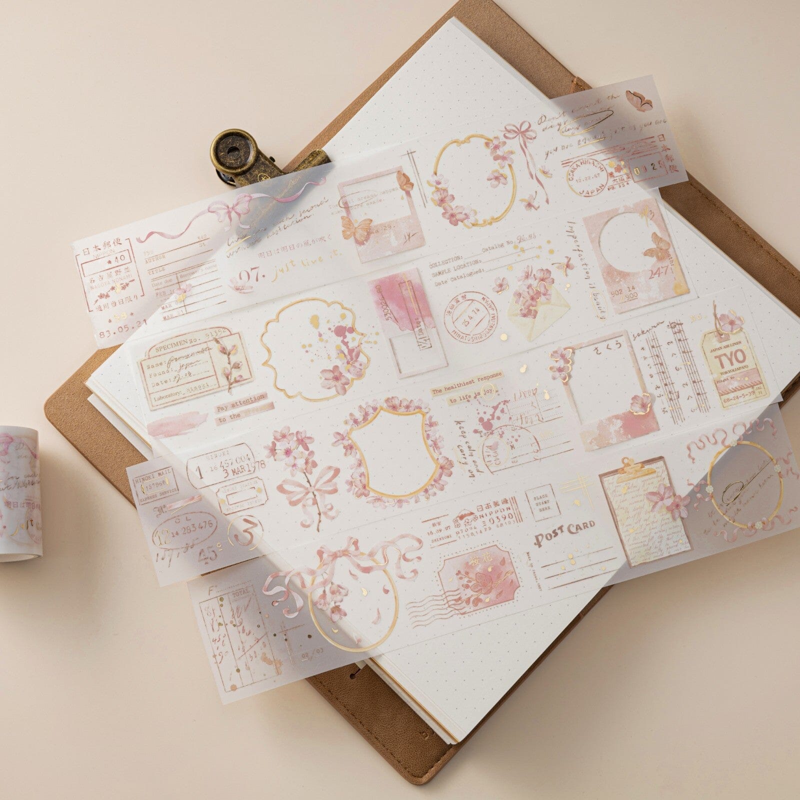 The soft milky PET matte tapes with beautiful cherry blossoms, functional frames and special icons! Use the flower tape to add special pink details & use the frames and borders to add structure to your pages, highlighting any special memories. Take a uplifting visit into the blossom viewing with us as you decorate with these vintage & floral inspired tapes.