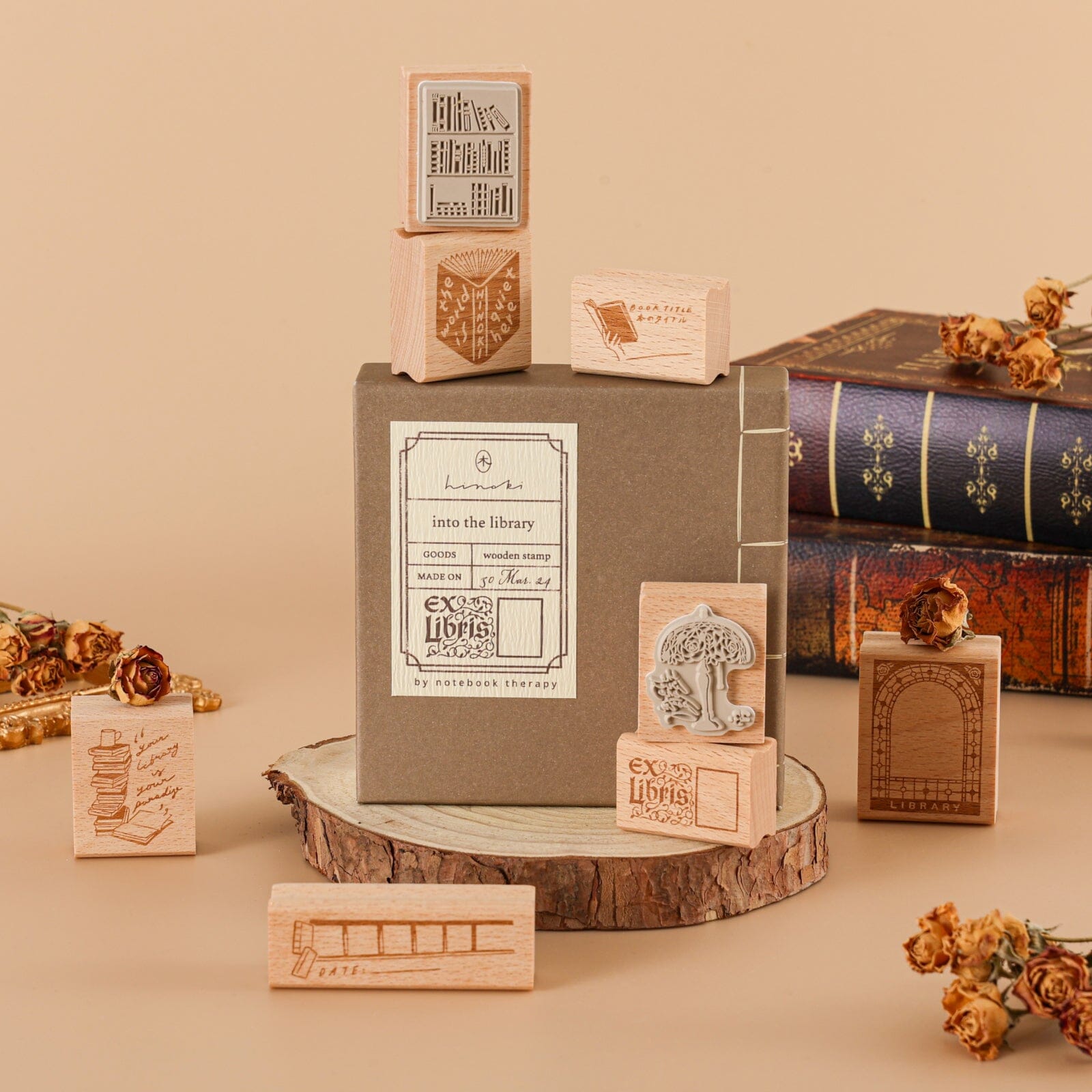 Hinoki - ‘Into the Library’ Engraved Wooden Stamp Set