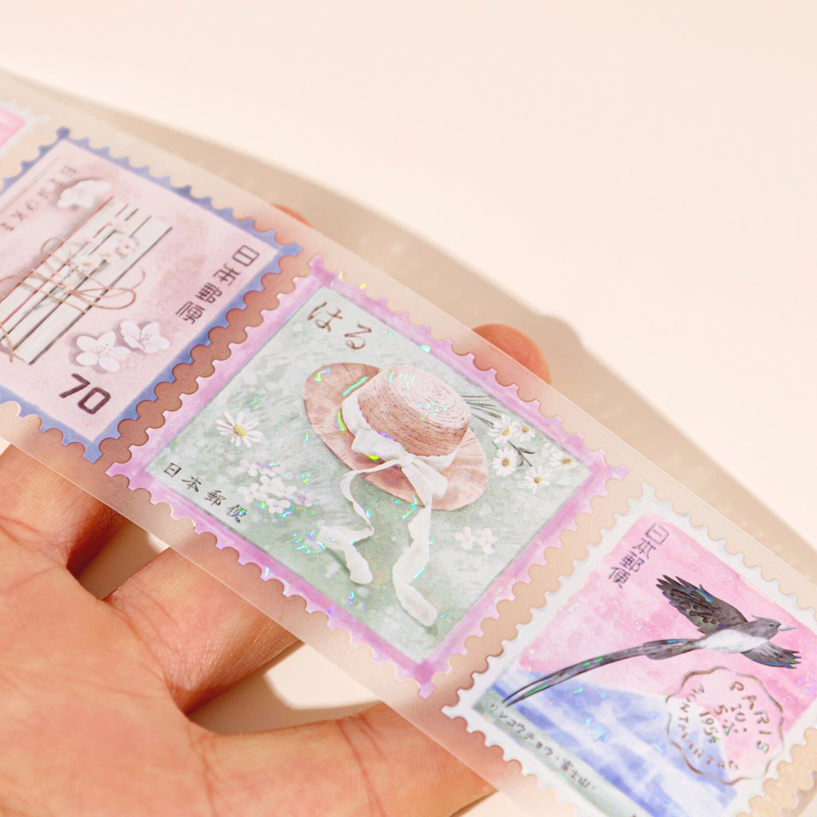 This luxury set includes 2 Hinoki decorative spring-themed extra wide PET tapes, with a stunning holographic effect + 3D raised rose gold details. The special technique of UV oil printing means crisp details & beautiful features, and backing paper on each tape means you can cut out your desired design without any wastage. The illustration loops are extra long (1 metre) meaning more designs per roll, more options for creativity! Take a moment to feel the spring breeze and listen to the birds singing as you decorate with these bright + floral spring tapes.