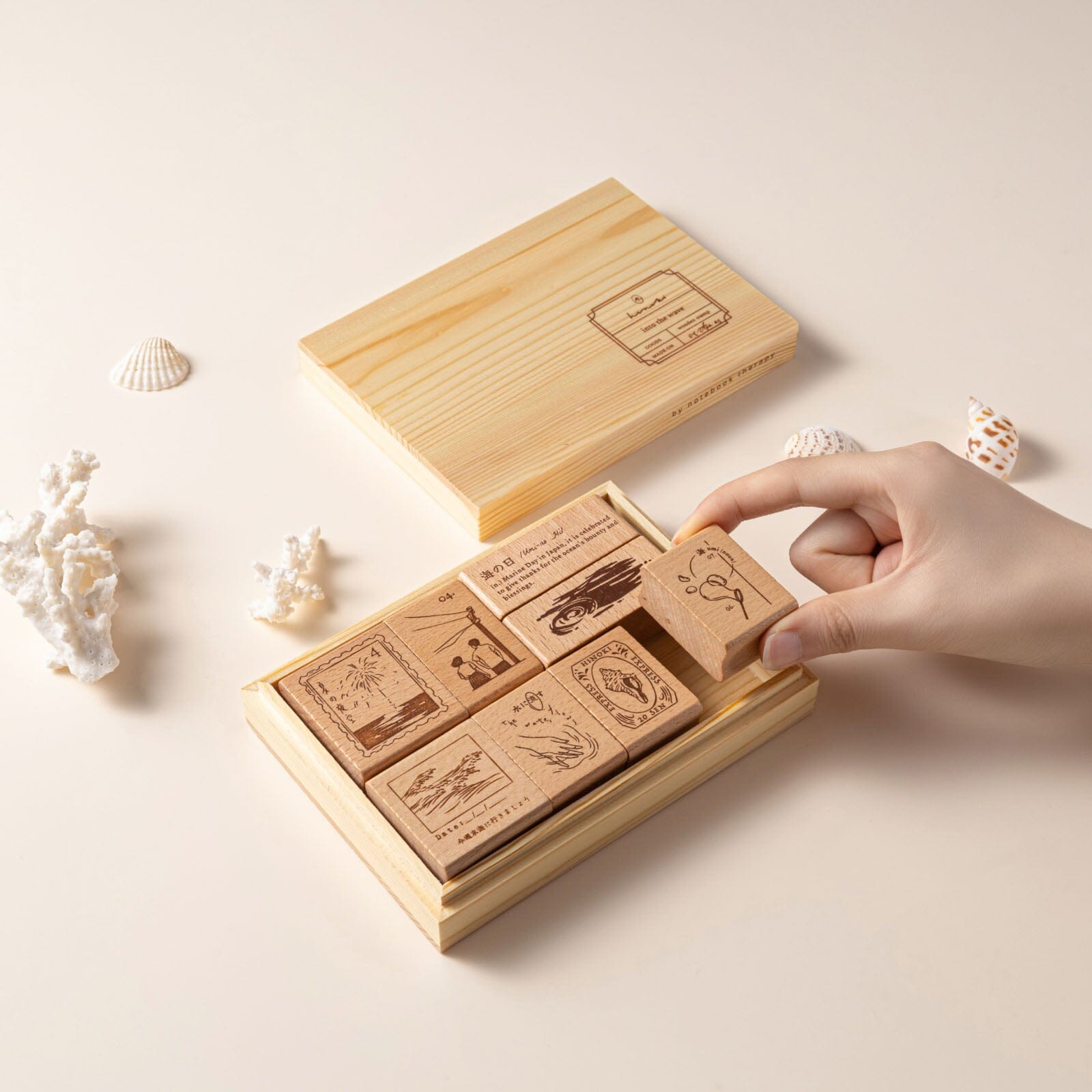 This unique wooden stamp set is inspired by the beautiful Japanese holiday, Marine Day (海の日) - a Japanese national holiday dedicated to appreciating the beautiful ocean and thanking it for its bounty.