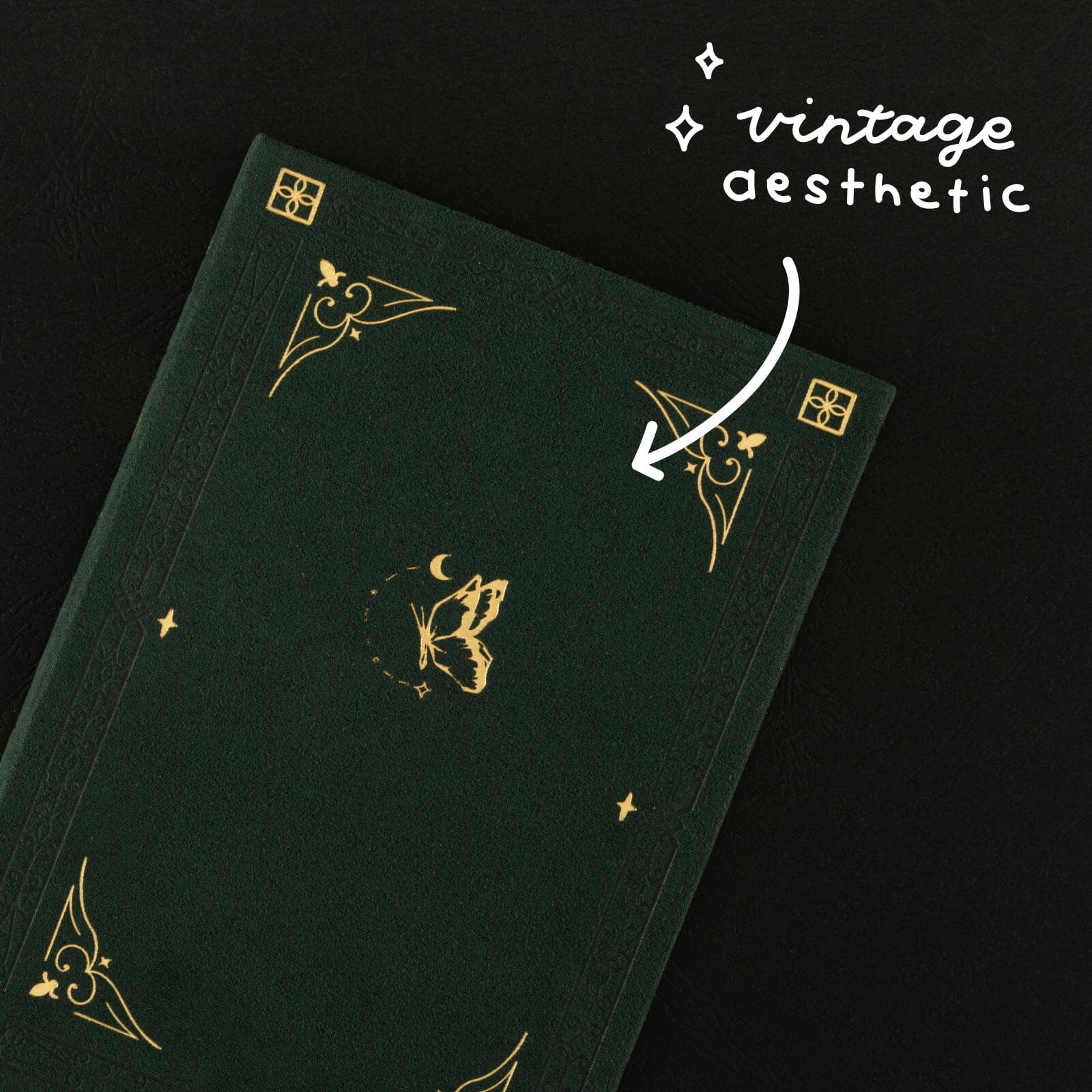 The vintage-style coloured and delicately illustrated pages will transport you to a cozy reading experience, where you can fill out each beautiful page with your reading insights on your book journey with a variety of reading journal templates, all wrapped in a soft velvet cover with special gold foil details.