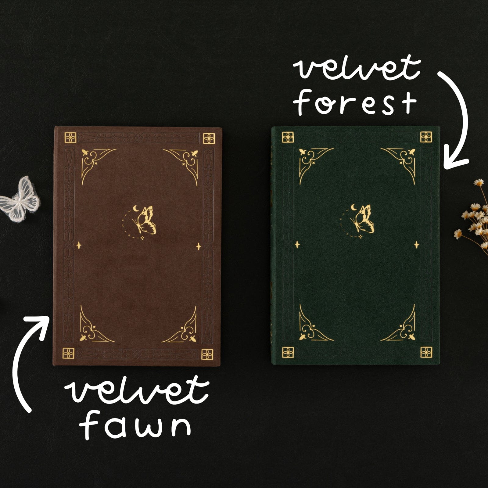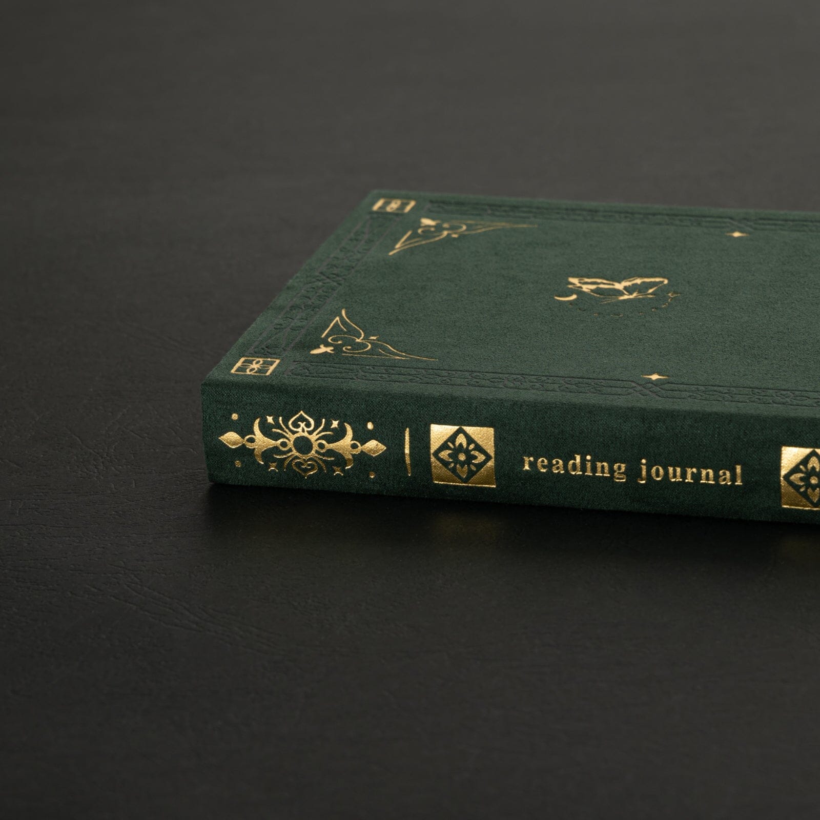 Choose between the two luxury foiled and embossed colours ‘Velvet Fawn’ or ‘Velvet Forest’. Express yourself in the ‘about the reader’ section, track your reading progress with the reading log, write book reviews, track book challenges, store favourite quotes and more!