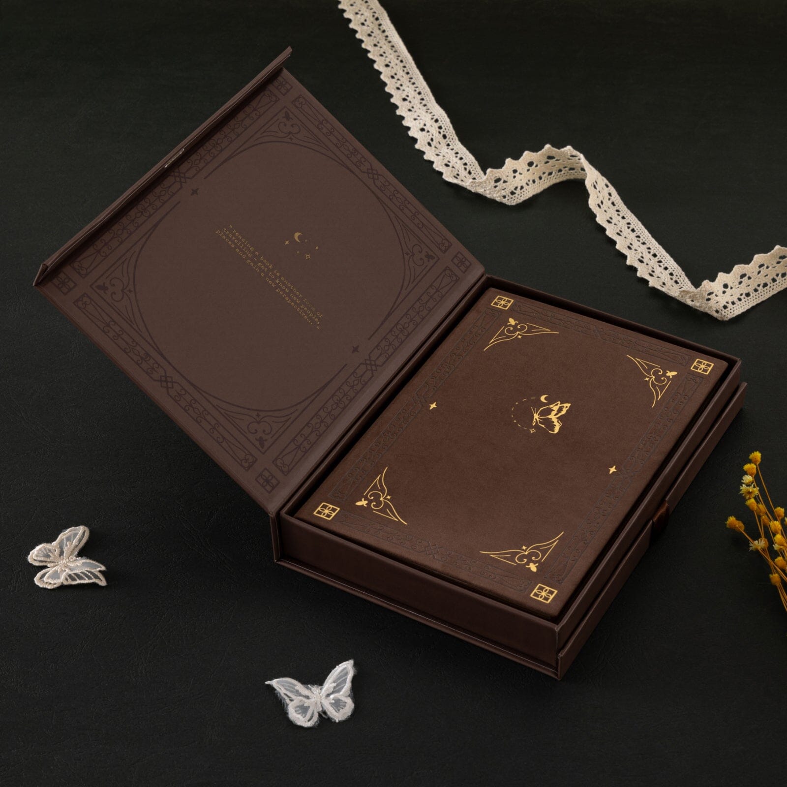 - A5 (145x210mm) notebook size with gold foil and embossed details