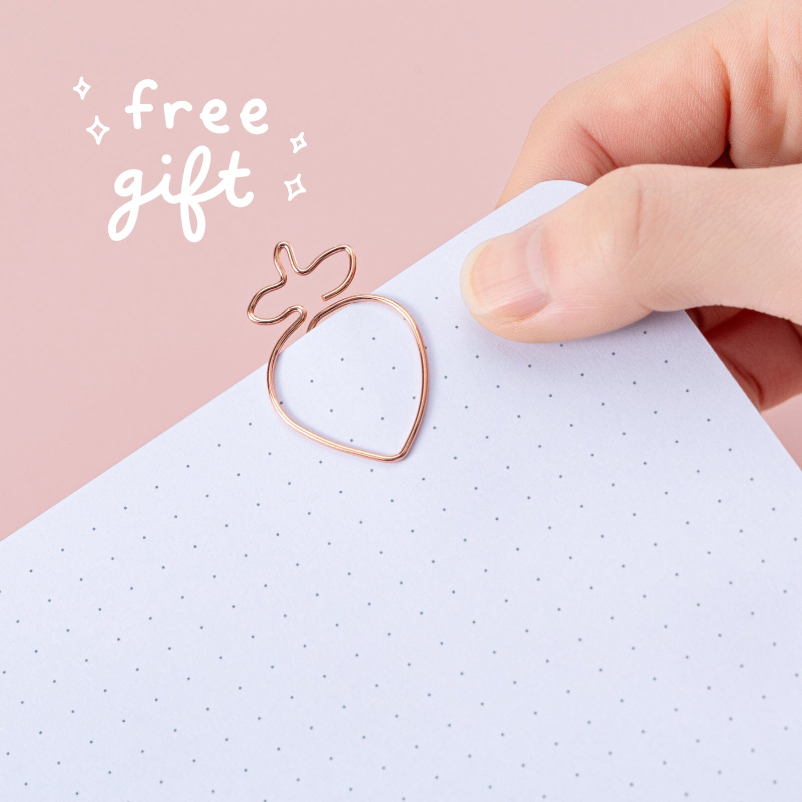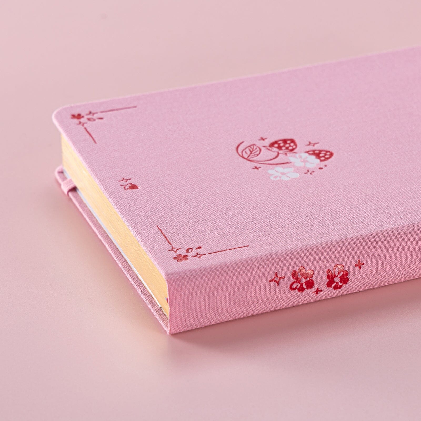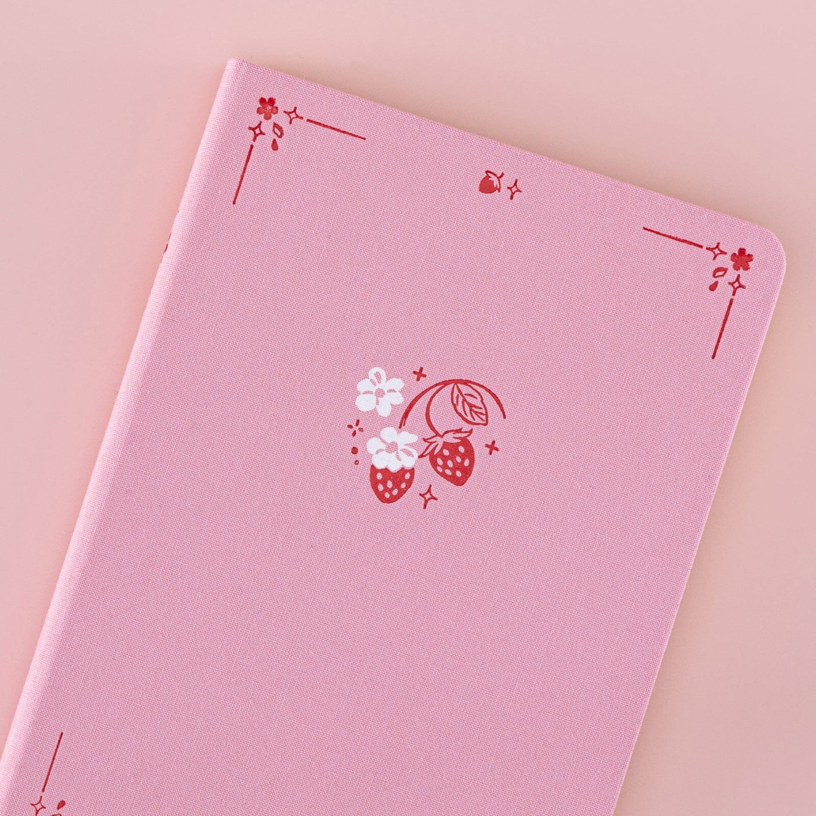 Part of our Tsuki Sakura Friends collection, inspired by the sweetest strawberries that grow in springtime. This charming addition to the beloved Tsuki Collection of 160GSM dot grid notebooks showcases a delicious strawberry design in red and white foil on a beautiful pink linen, making it the perfect companion for your spring journaling.