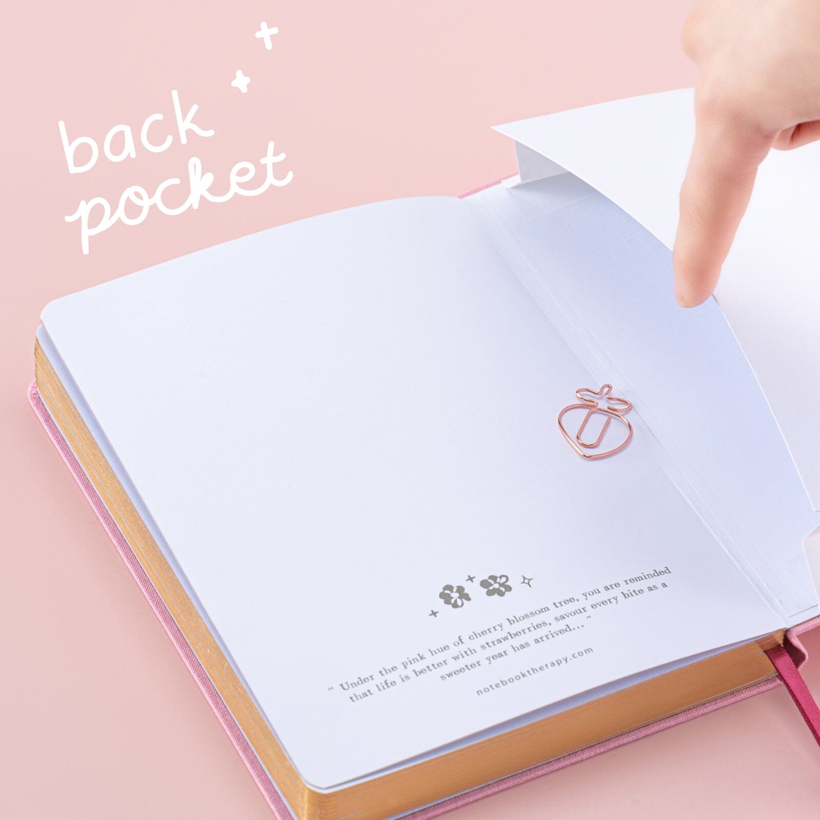 - Back storage pocket, with free paperclip gift + elastic band closure