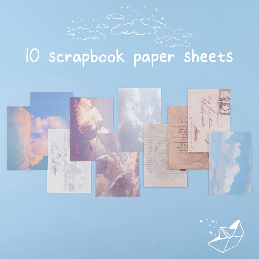 - 20x beautiful A5 scrapbooking paper sheets, including 20 designs: 10x A5 special papers, 10x vintage cloud papers