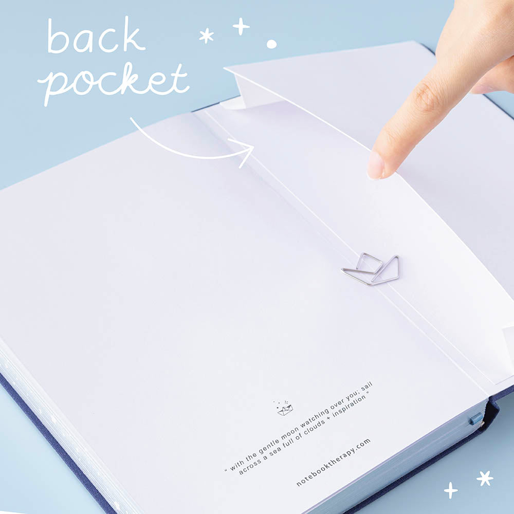Introducing the Tsuki ‘Dream Sailing’ Limited Edition Bullet Journal by Notebook Therapy ☾ Let this dreamy notebook take you to a peaceful wonderland! Sail into dreamland with the paper boat design in holographic foil before opening the deep blue linen cover to reveal our famous ultra-thick Tsuki dot grid paper - perfect for bullet journaling! Part of the Cloud Dreamland Collection to celebrate another year of Tsuki, bundle with other items from the collection to complete the aesthetic!