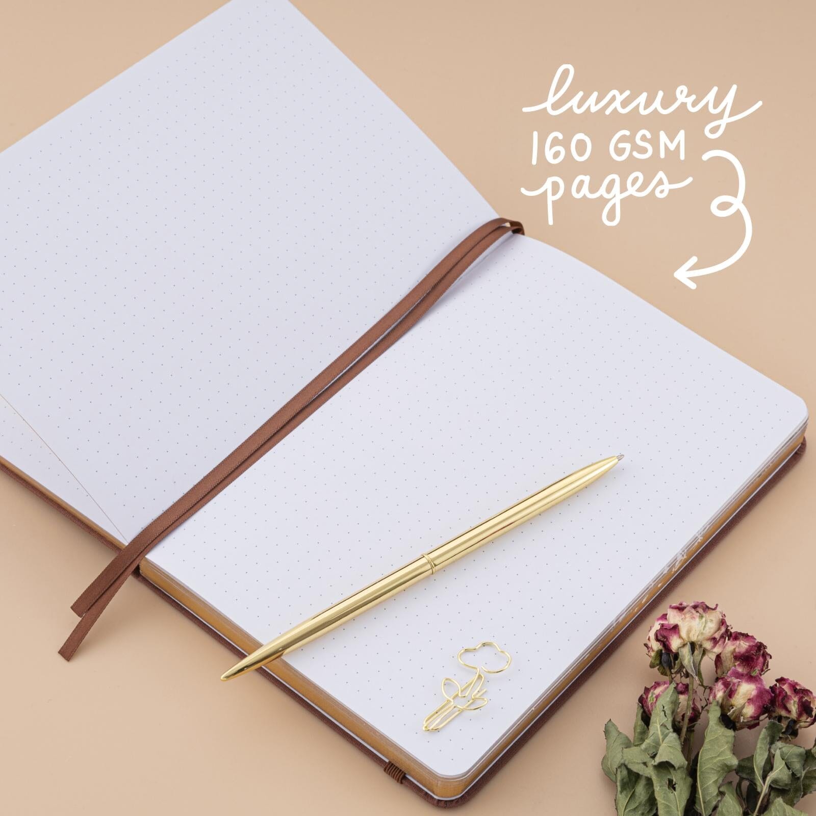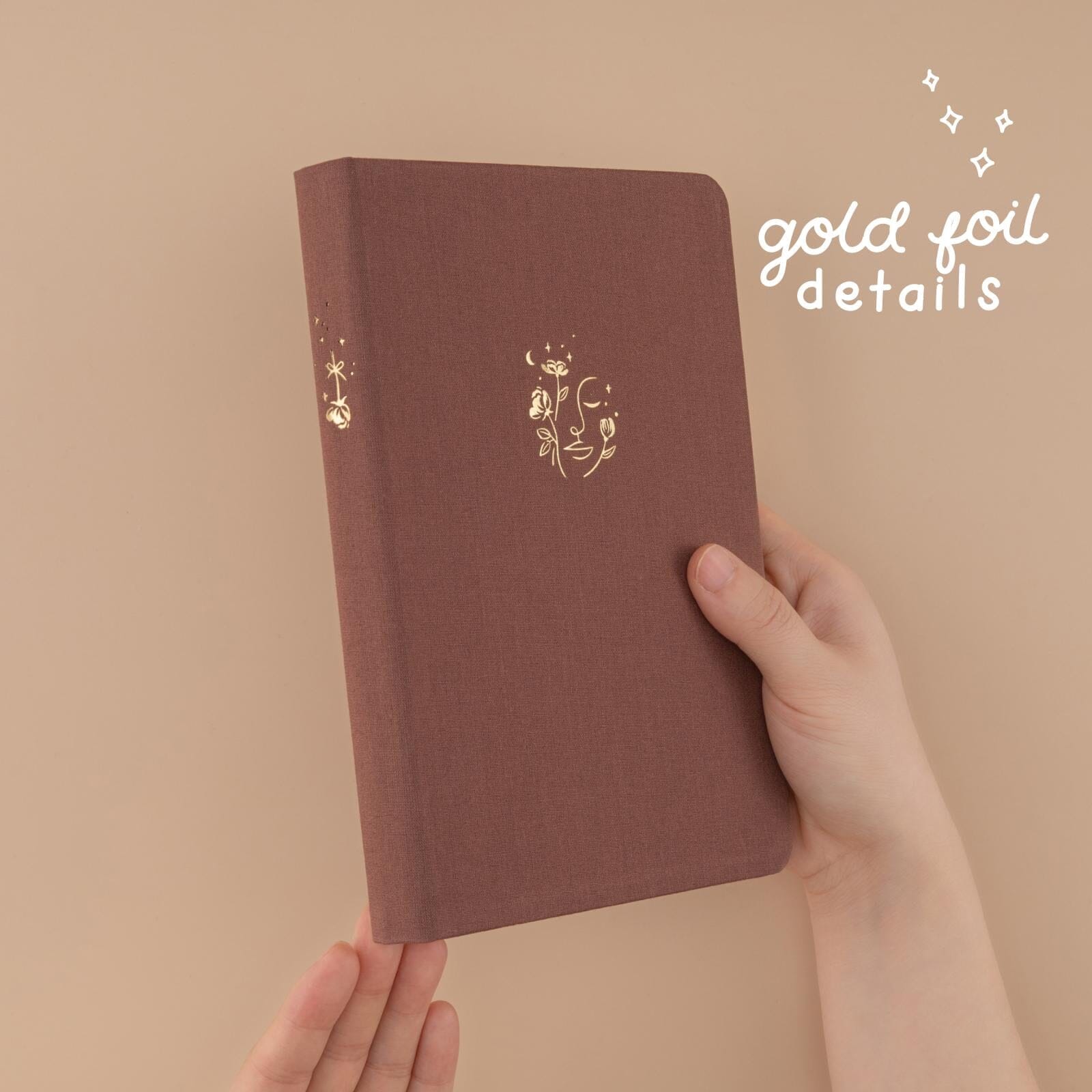 Fall in love with our elegant gold foil floral design + luxury page edges, before opening the old rose linen cover to reveal the very same Tsuki quality dot grid notebook paper! Here you can decorate all your weekly spreads, monthly logs, affirmation pages and other bullet journal ideas with ease!