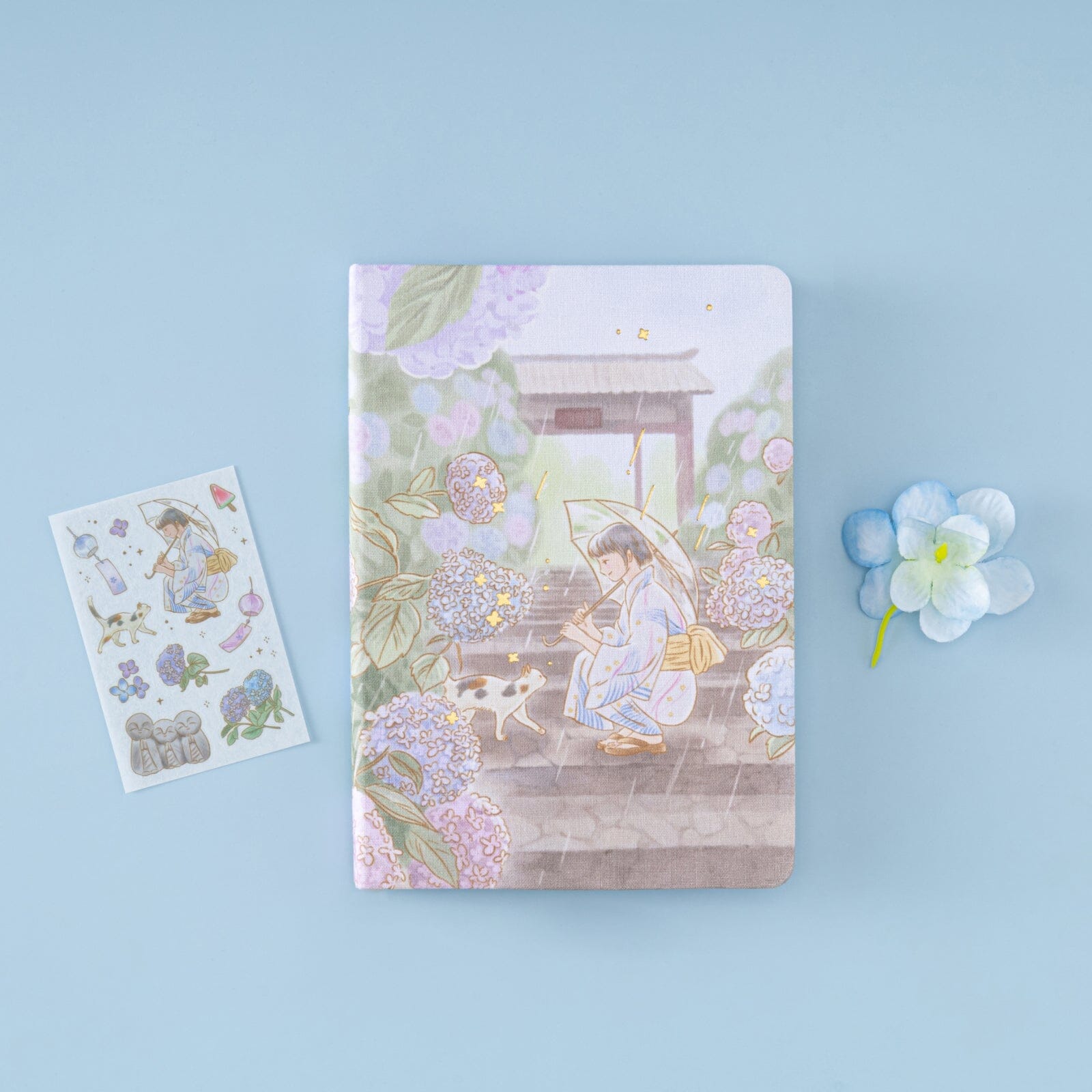 Embrace the beauty of summer with our second installment of Four Seasons Collector’s Edition 2024 notebooks. Featuring a linen cover adorned with a charming illustration of an elegant woman in a traditional Japanese kimono and an umbrella amongst the lush hydrangeas and gentle summer rain, this notebook invites you to capture your thoughts, plans, and dreams amidst the serene spirit of the season on each 160gsm dot grid notebook page.