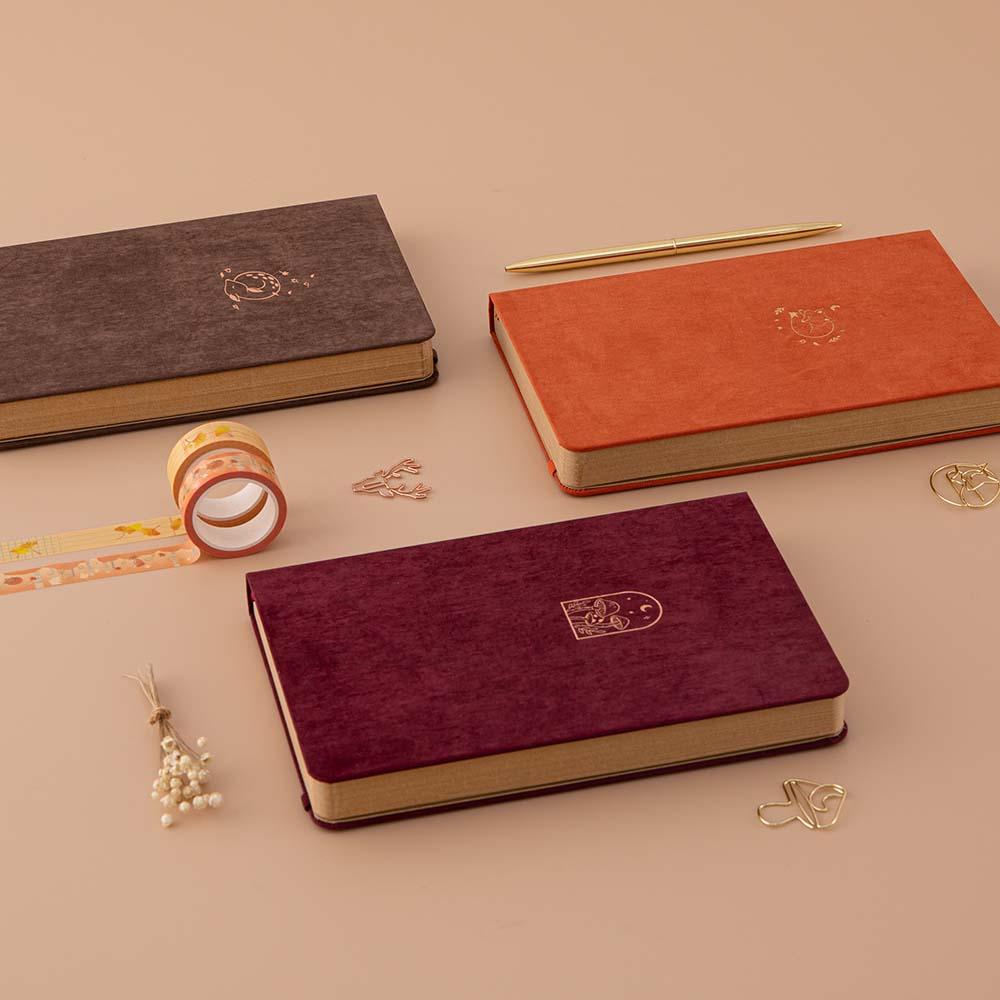 Choose from three super-soft velvet-covered bujos: our new wine red ‘Kinoko’ bujo, the burnt orange ‘Kitsune’ notebook or our classic fawn brown ‘Nara’ Bullet Journal.