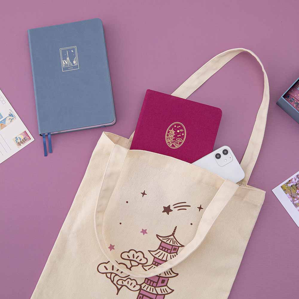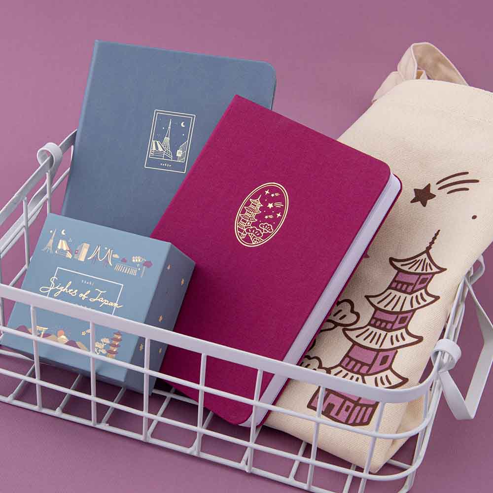 This Kyoto bullet journal is inspired by the famous Toji temple in Kyoto. Featuring a rich magenta linen fabric cover + gold foil details. Inside you’ll find our famous 160GSM dot grid paper, perfect for bullet journaling, scrapbooking, etc. Pair with matching items in our Sights of Japan collection to complete the Japan aesthetic.