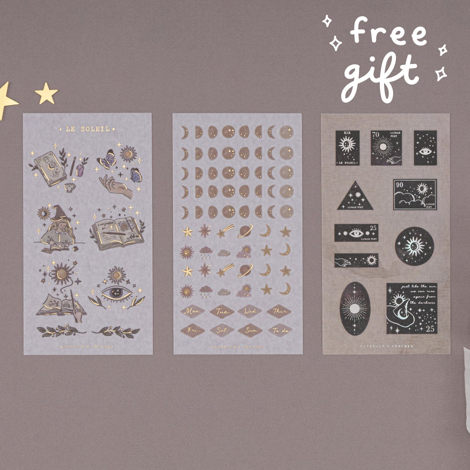 This moon planner includes 3x special sticker sheets with gold foil details with a function design to help you plan your days easily all in a convenient travel size.
