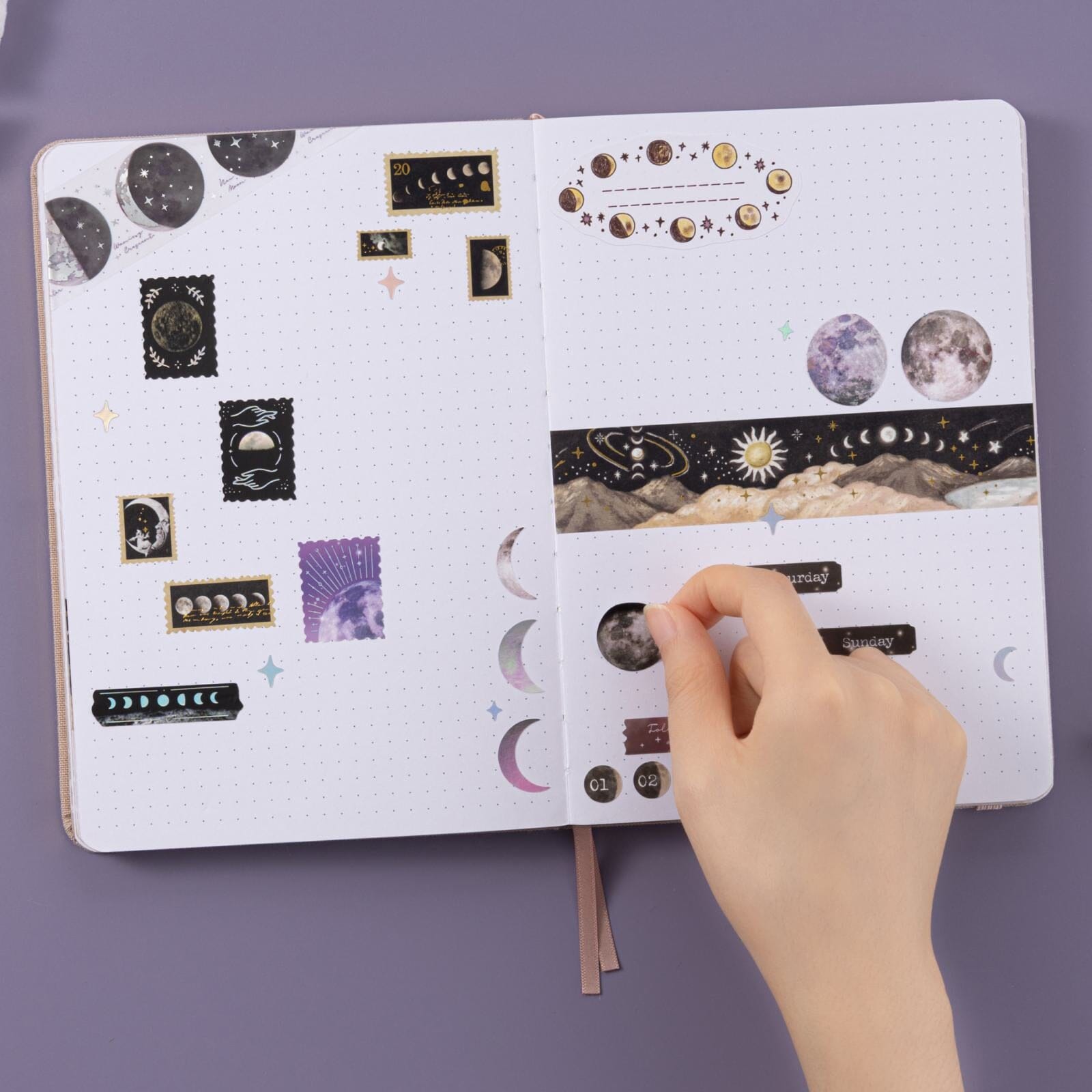 These Tsuki Lunar Mystery sticker sheets are perfect for decorating your penpal letters, bullet journals, scrapbooks and junk journals with magical moon + stars elements for a witchcore aesthetic.