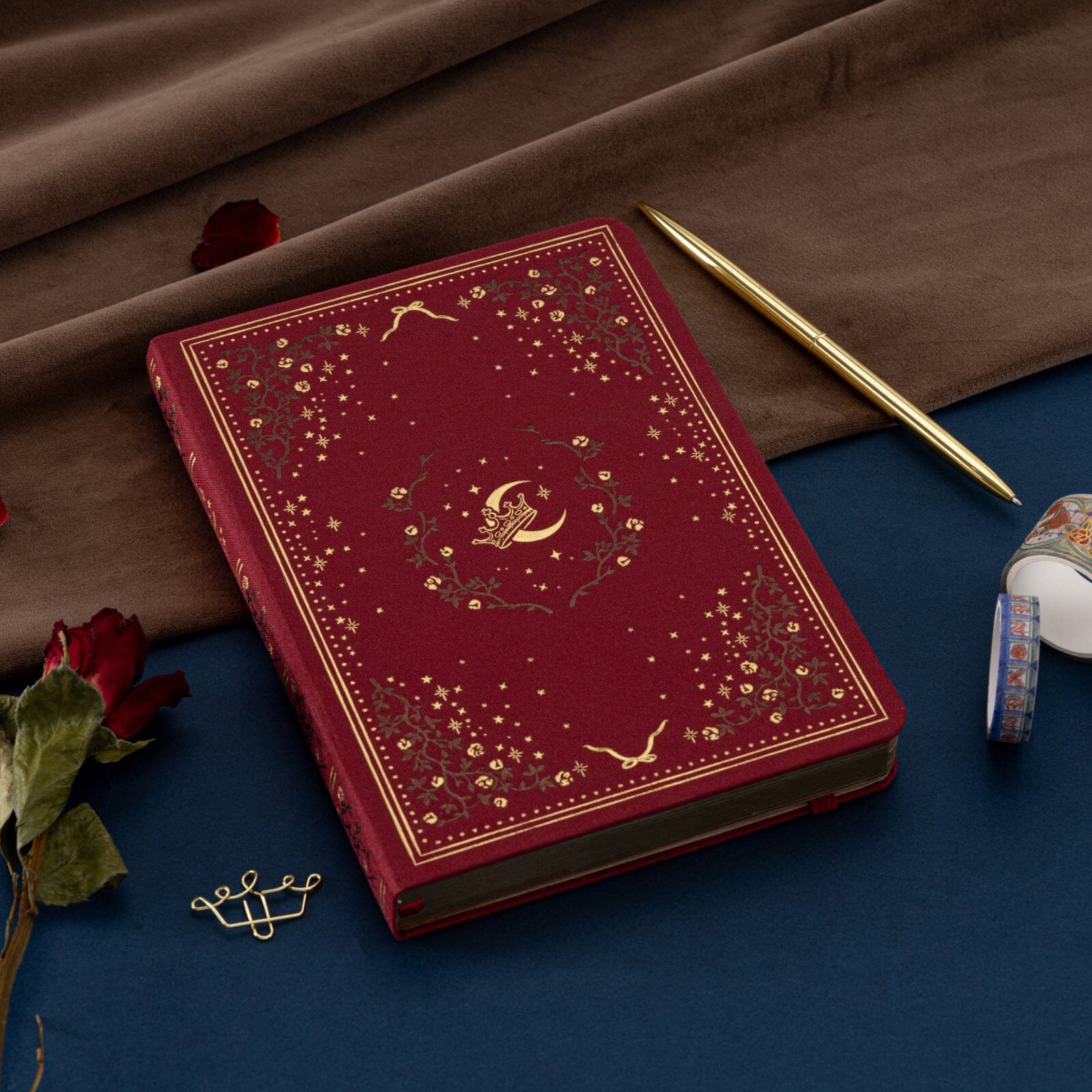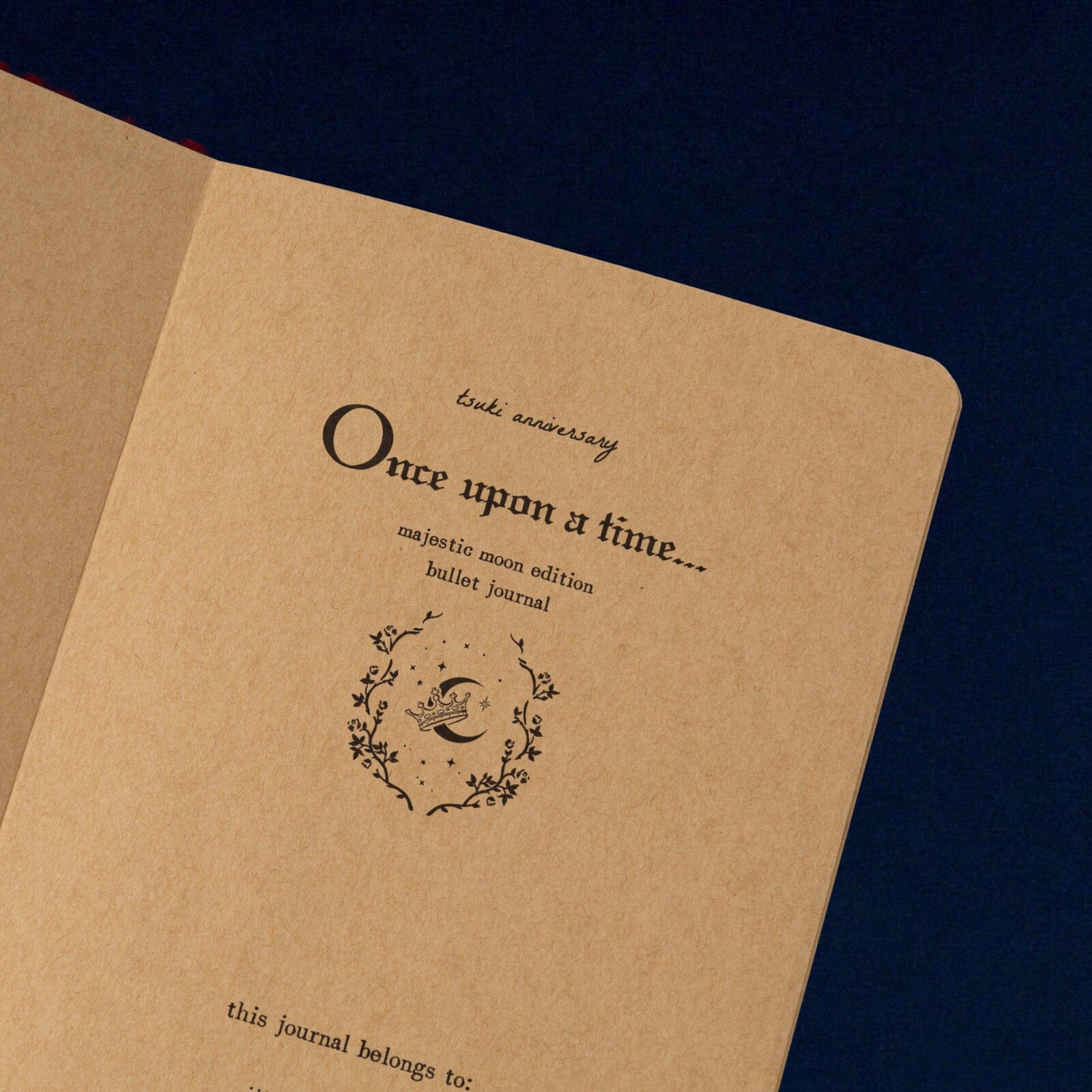 A kraft paper version of our brand new Tsuki Majestic Moon bullet journal to add a lovely vintage touch to your journal spreads. Inspired by fairytales and all things magic to bring you your happily ever after. This notebook showcases the same crown + moon design with floral accents with brown and gold foil on a rich burgundy linen featuring a special anniversary inner cover + 150gsm kraft paper, hoping to bring you more magic as you manifest in your journal.