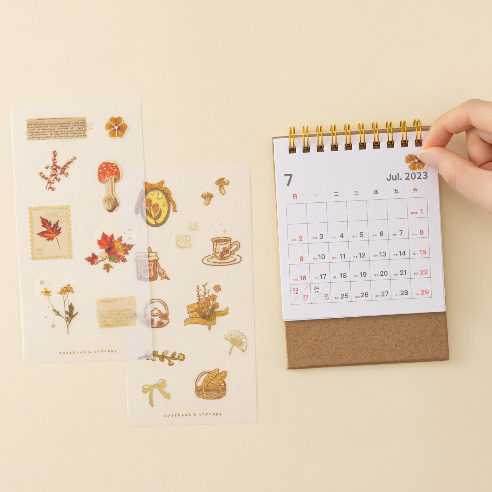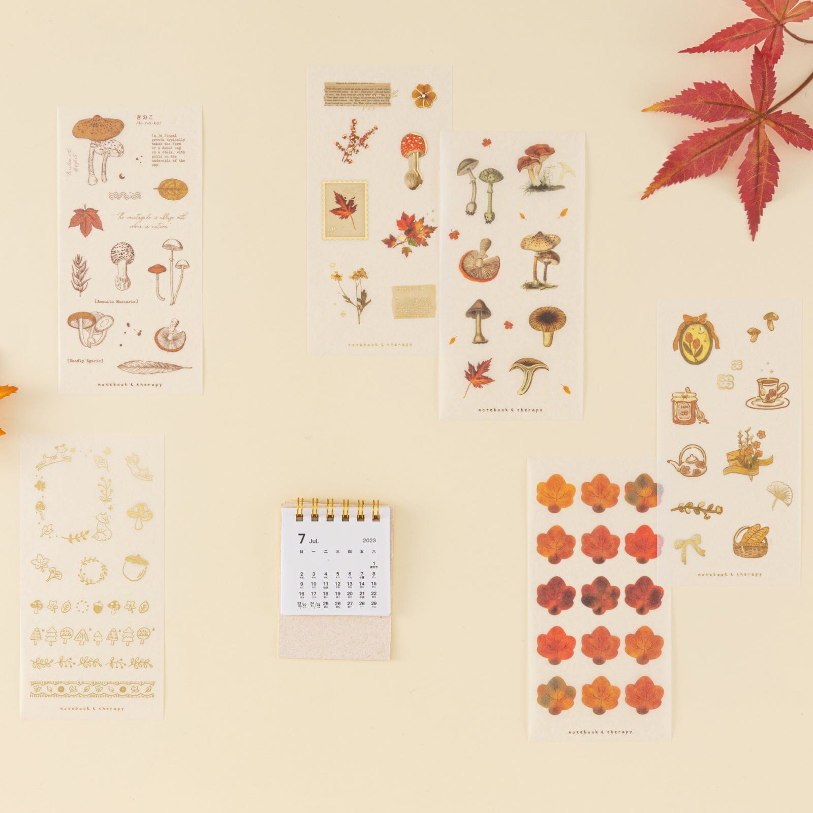 These Tsuki Maple Dreams washi sticker sheets are perfect for decorating your penpal letters, bullet journals, scrapbooks and junk journals with autumnal elements perfect for fall. This set has 6 beautiful sheets featuring 3x gold foil detailed sticker sheets (8 x 16cm).