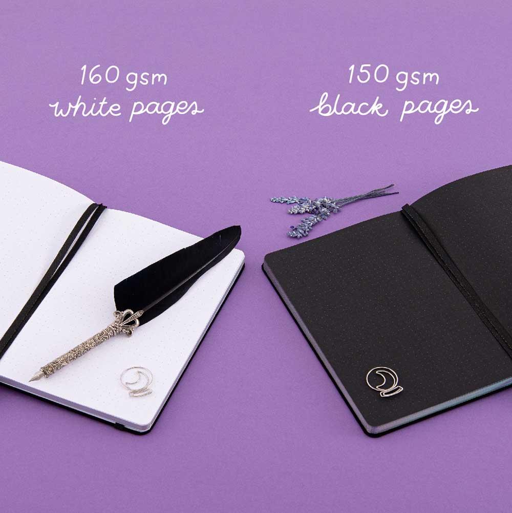 - Choose between 160GSM ultra-thick white paper or 150GSM black bujo paper - no bleeding or ghosting