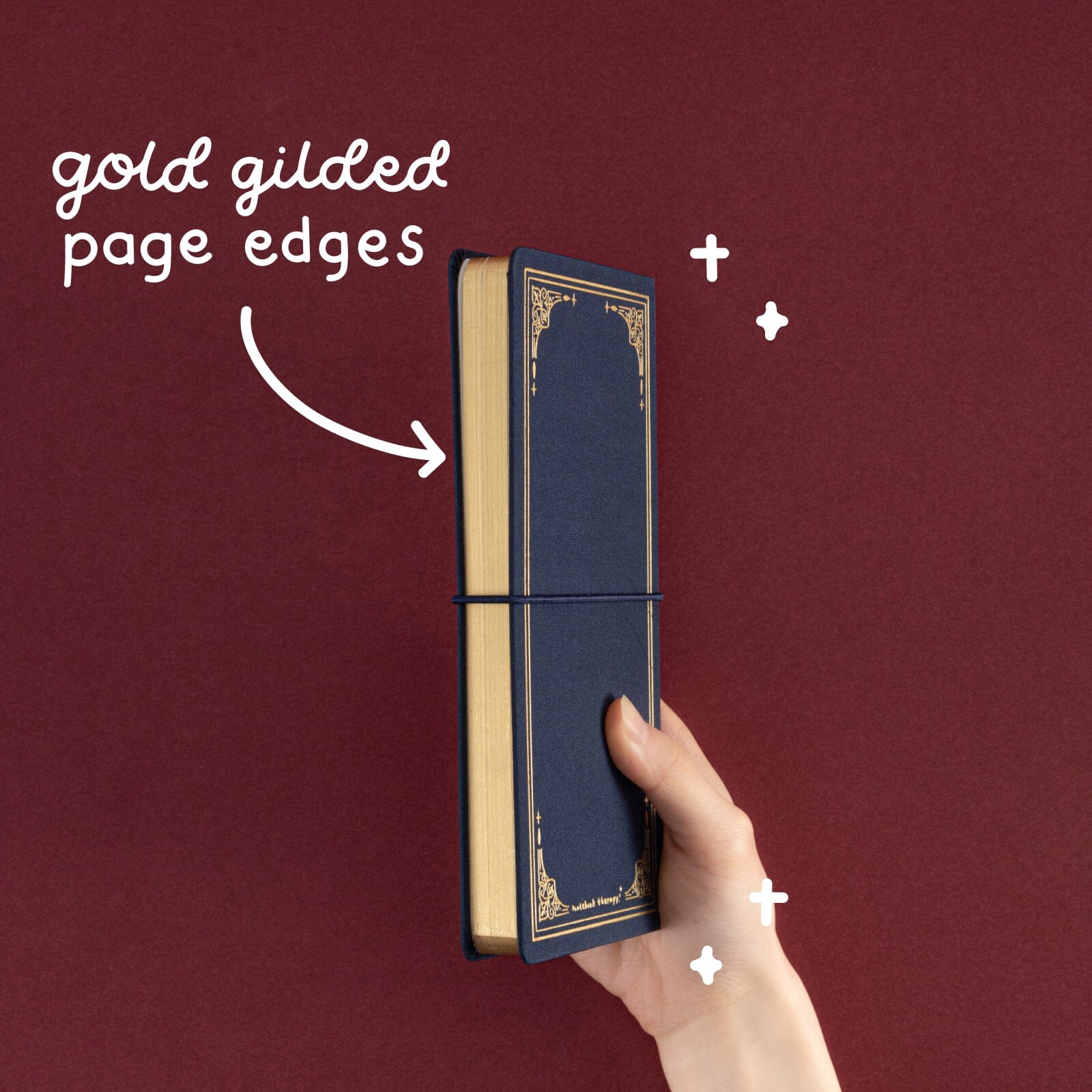 - Navy blue linen cover with gold foil design - high quality, durable + sustainable