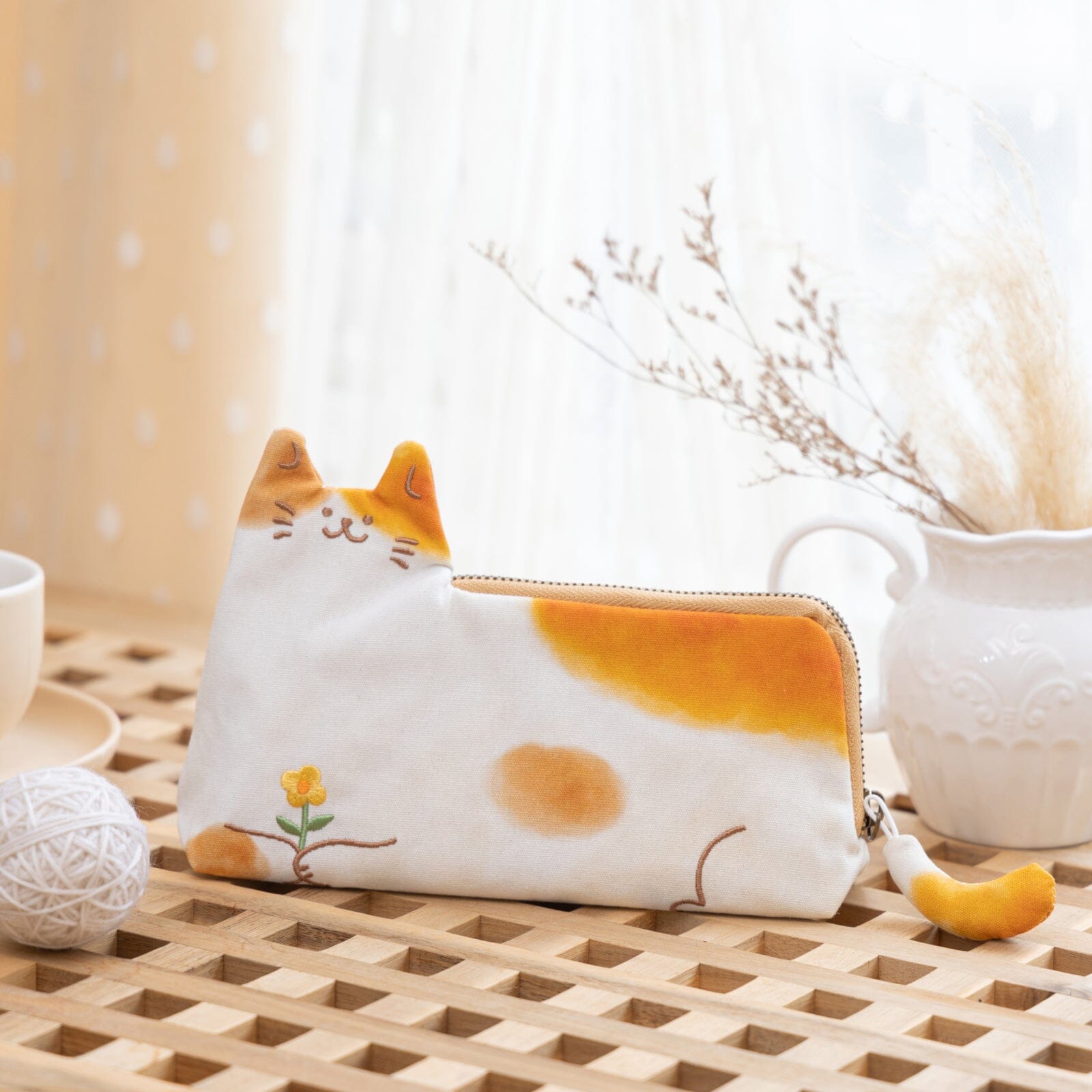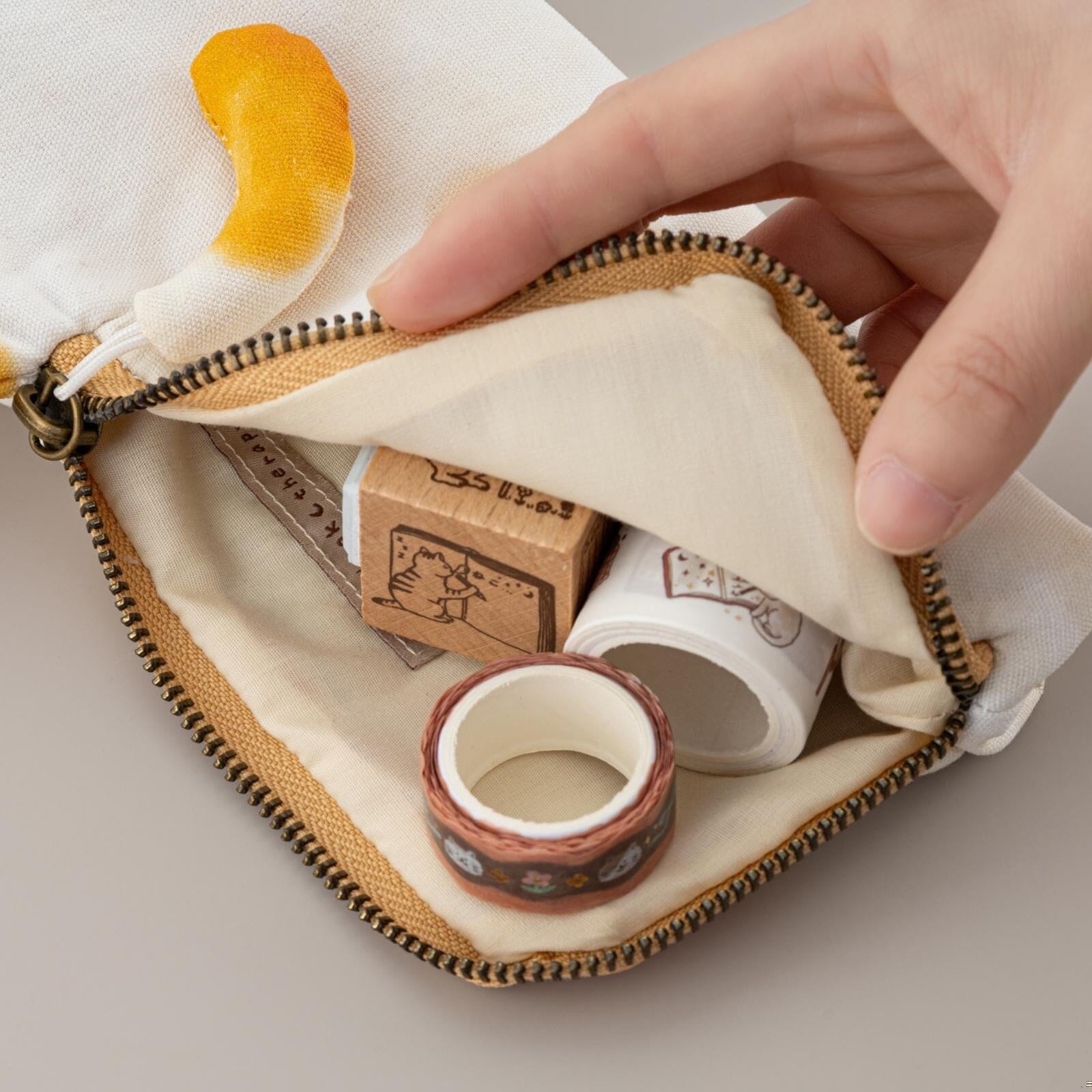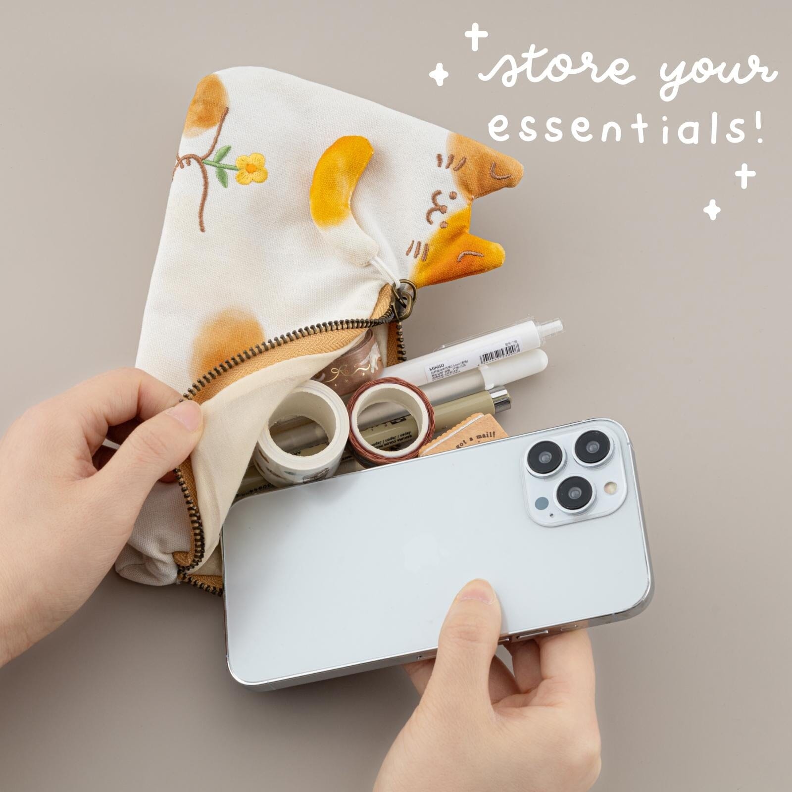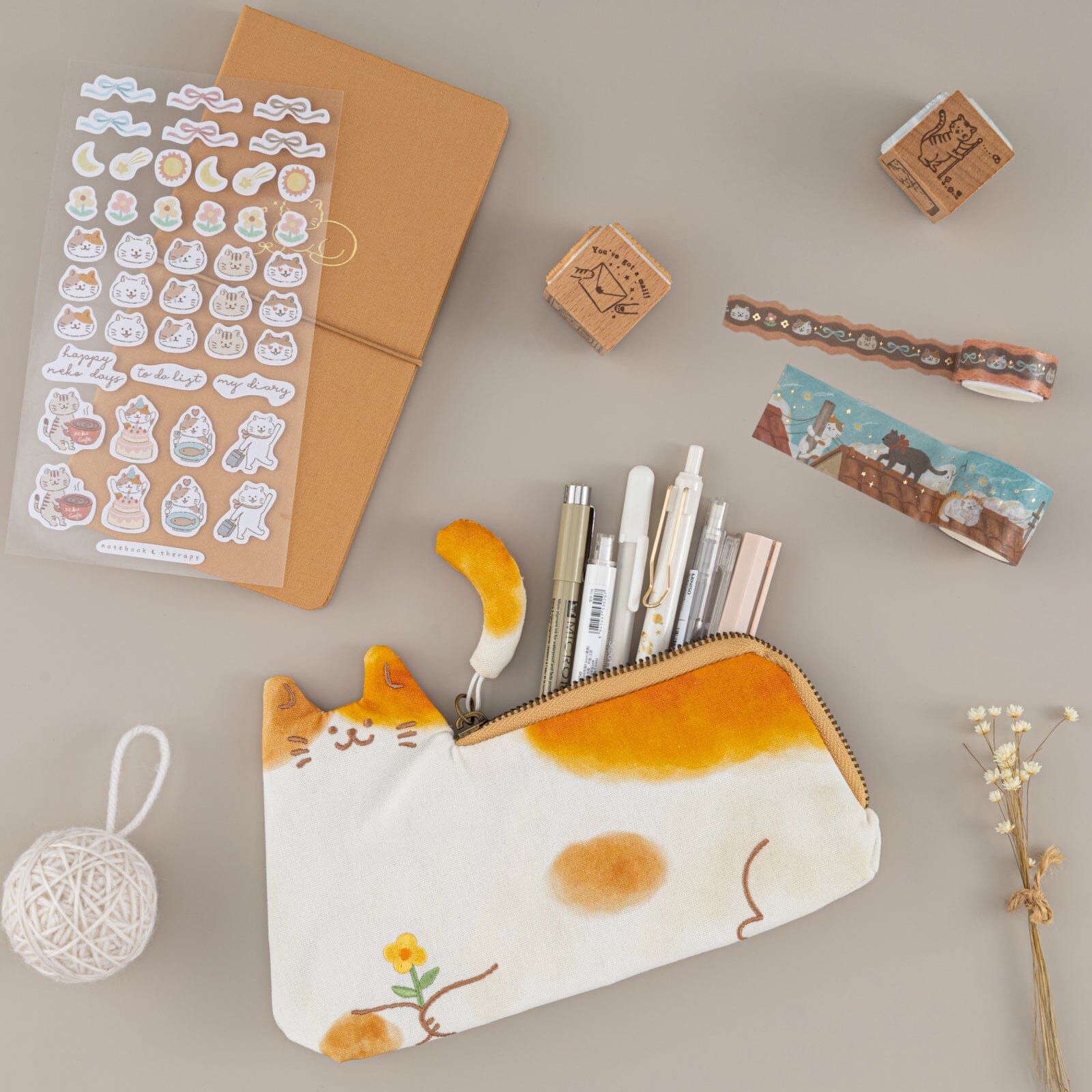 Created to pair perfectly with our brand new Tsuki Neko Days travel gift set! Store all your journaling essentials in this super kawaii cat pencil case with embroidered details. Designed to carry small items for journaling on the go.