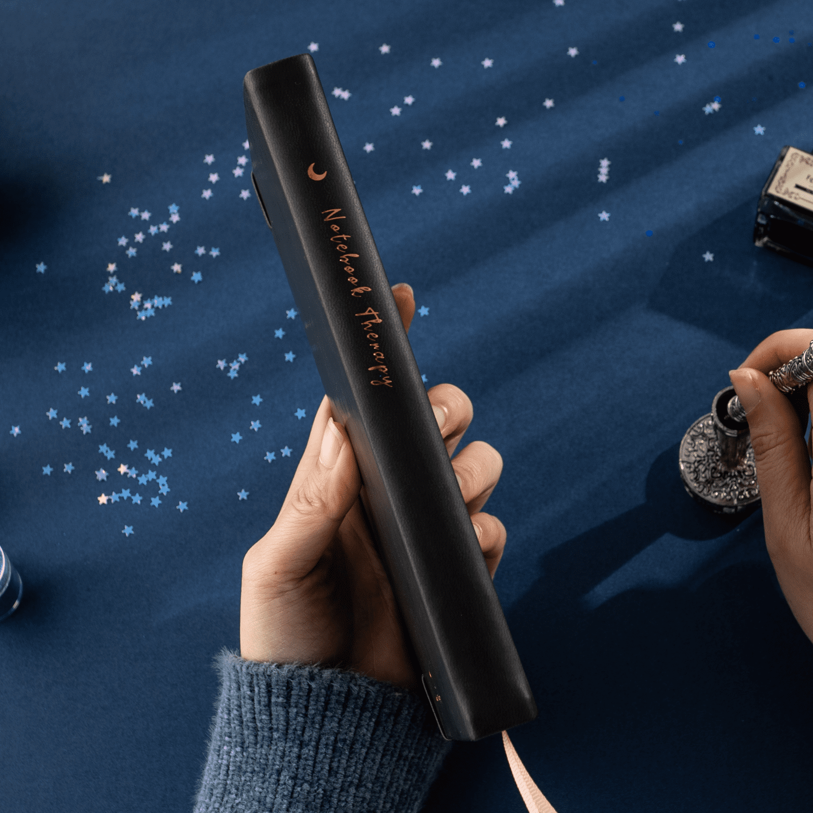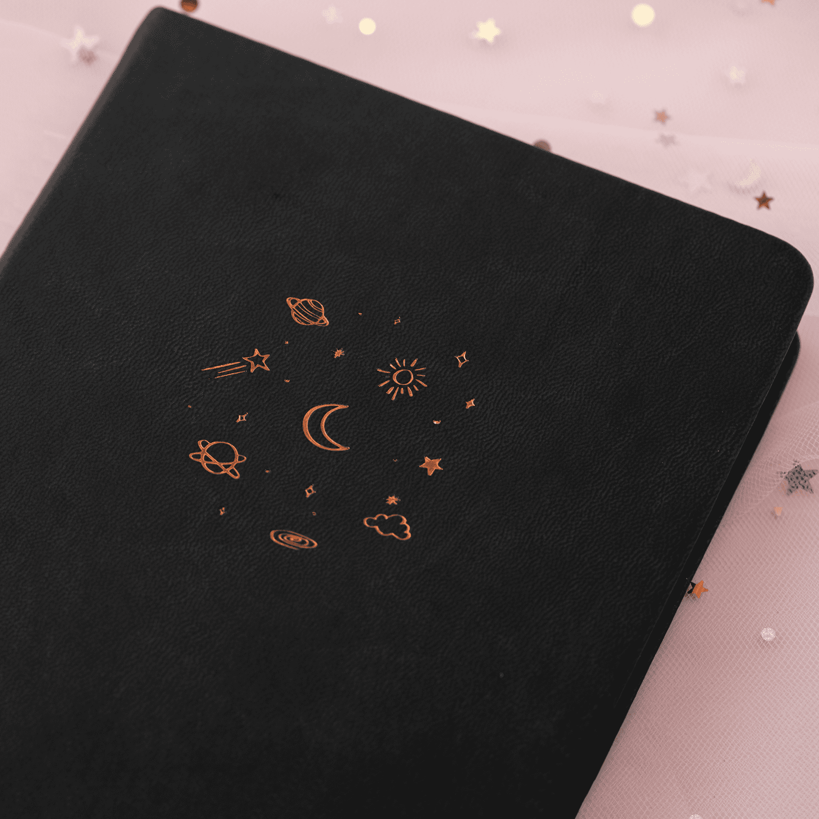 Designed by our team in Tokyo, with input from our amazing community. The 'Night Time' limited edition Tsuki 160GSM bullet journal brings beautiful dark vegan leather and a unique copper foil galaxy design to the much loved Tsuki series dot grid notebooks.