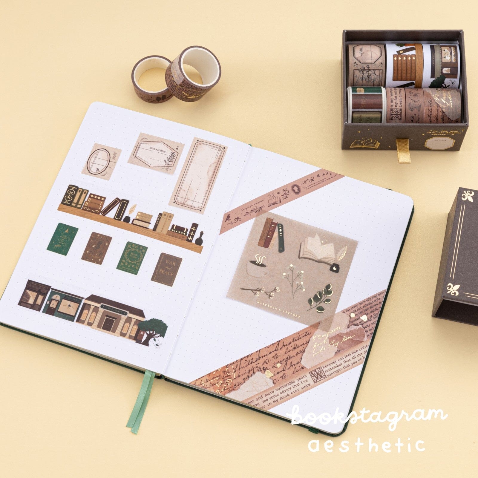 Book lovers will delight in opening our special eco-friendly gift box to reveal 7x unique tapes, decorated with our bookish illustrations + gold foil details perfect for our bookstagram community! From a functional writing tape to our classic book cover washi sticker roll, the vintage and deep tones will illuminate any reading journal, bullet journal, penpal letter or scrapbook. Pair with our Tsuki ‘Our Stories’ stamp set to complete the aesthetic!