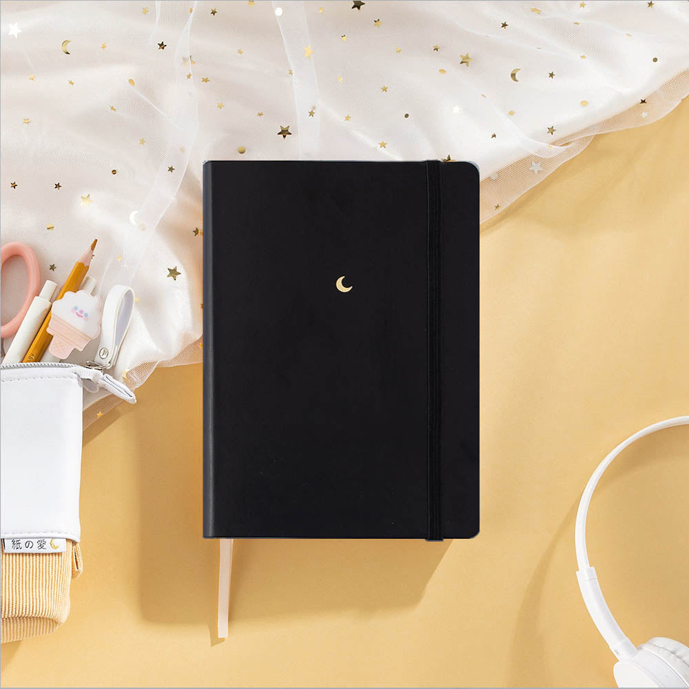 A popular addition to our Tsuki dot grid notebooks series, each bujo has a beautiful vegan leather soft cover, is filled with our signature ultra-thick 160 GSM paper + has an adorable gold foil moon design. Perfect for planning, doodling, painting + more! Available in 5 cute pastel colours and a new + exclusive limited edition run midnight black cover.