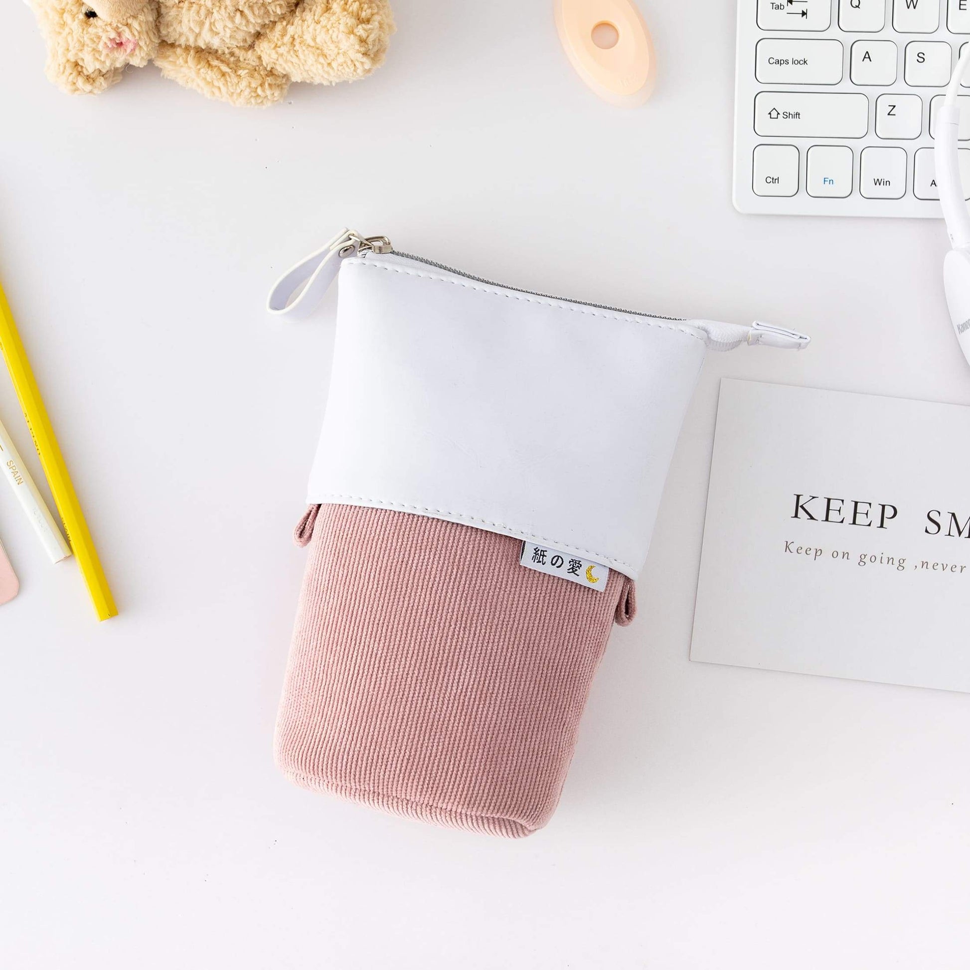 Designed exclusively by our team in Tokyo, our Tsuki Pop-Up Pencil Case is perfect for storing all your stationery staples! Made from super soft cord + vegan leather, this aesthetic pencil case goes with you, wherever you are. Simply pop it down for a functional desk pen pot, and up for taking on the go!