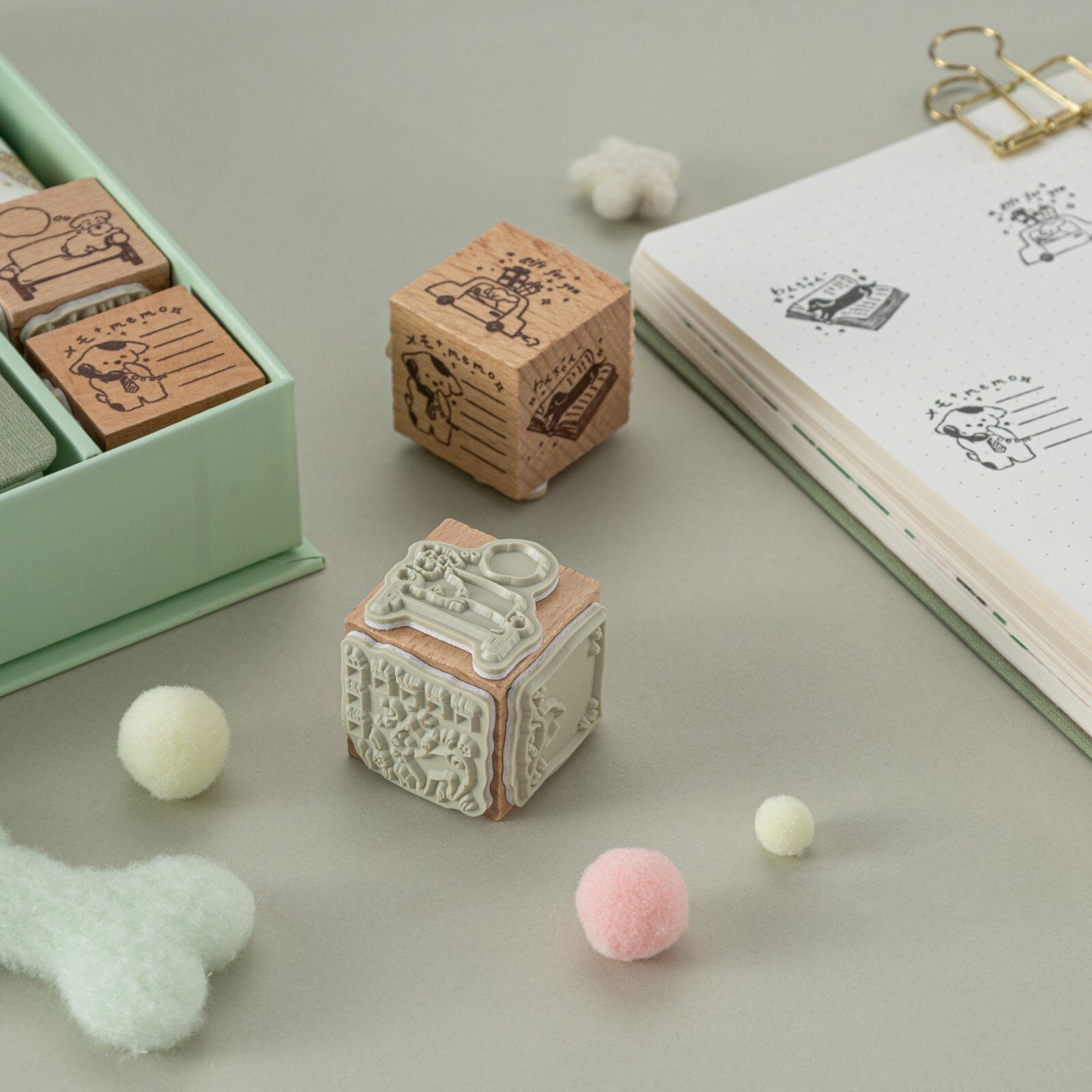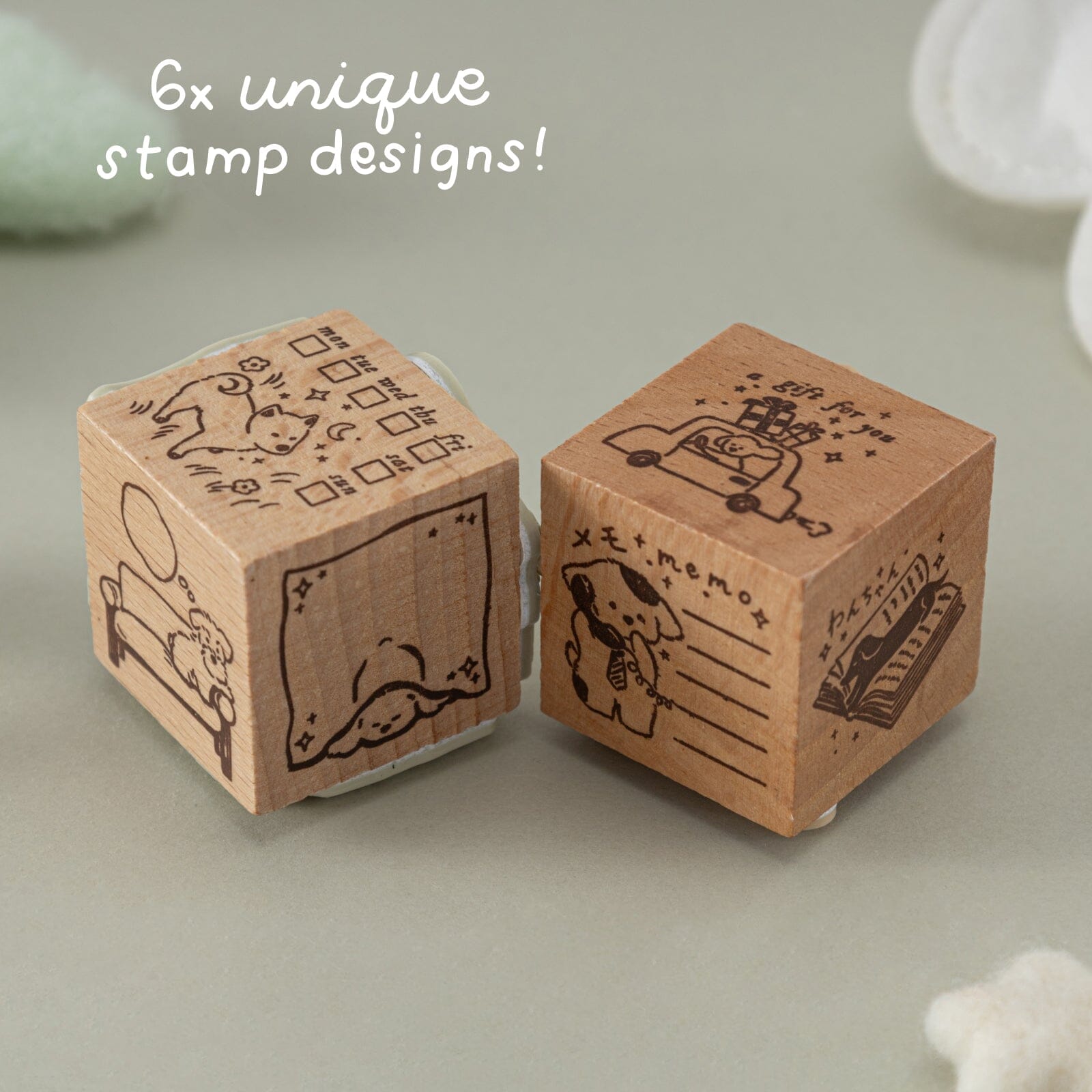 Enclosed in an adorable teal magnetic gift box, this set is filled with cosy stationery treats that feel like soft + warm puppy cuddles. Inside, you'll find 1x teal linen travel journal, complete with a cute sticker sheet, 5x puppy-themed washi tapes, 2x dice stamps with 3x designs on each stamp (6x designs in 2 making it portable and perfect for travelling!).