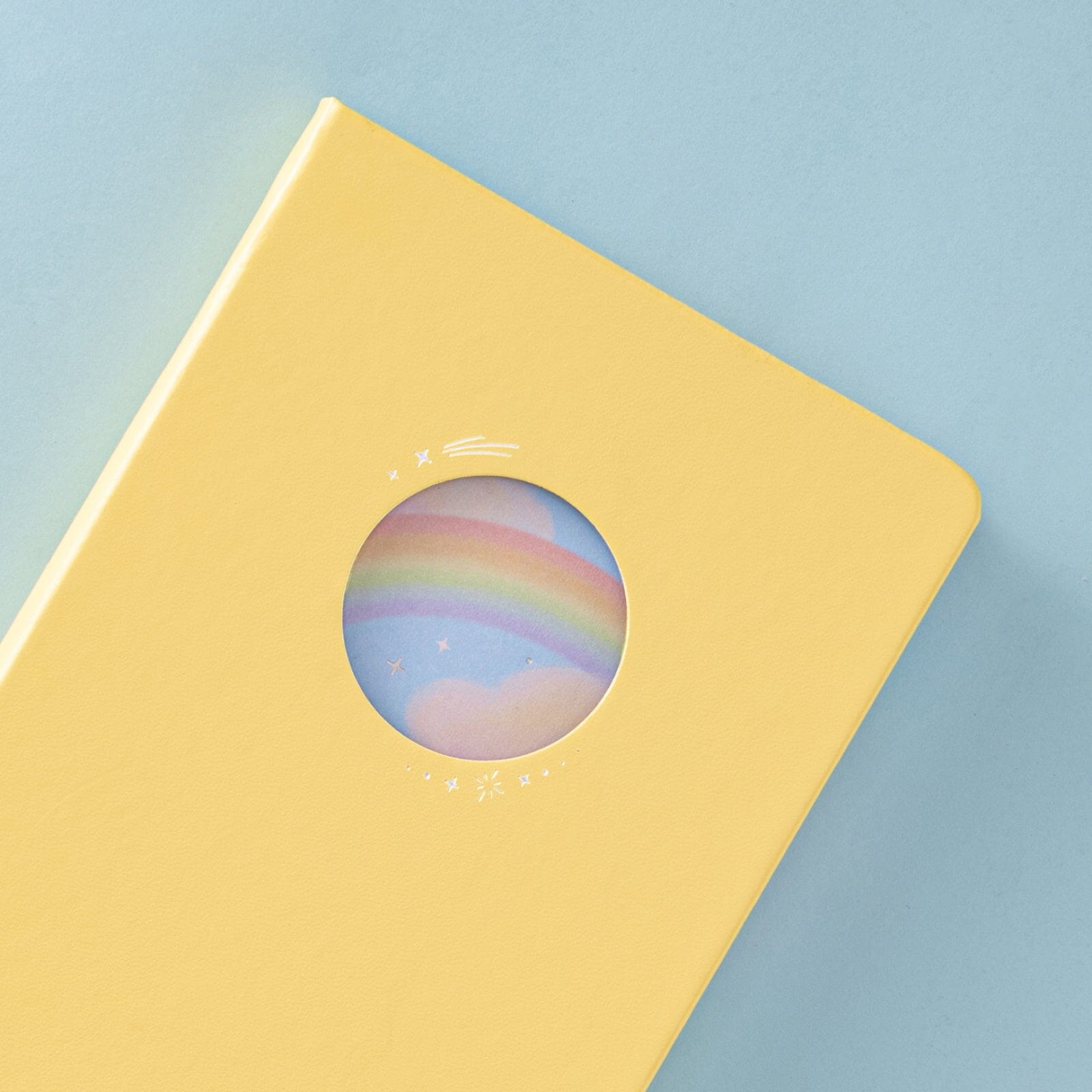 Inspired by the breathtaking colours of the rainbow and the boundless joy it brings. In this set, you’ll find our famous quality Tsuki bullet journal in original size (135x195mm) featuring a soft yellow vegan leather cover + holographic foil details and a cutout window revealing a beautiful rainbow, 6x one-of-a-kind washi tapes + 1x unique wooden rubber stamp. All packaged in a stunning gift box! Perfect for gifting, bullet journaling, scrapbooking, etc.