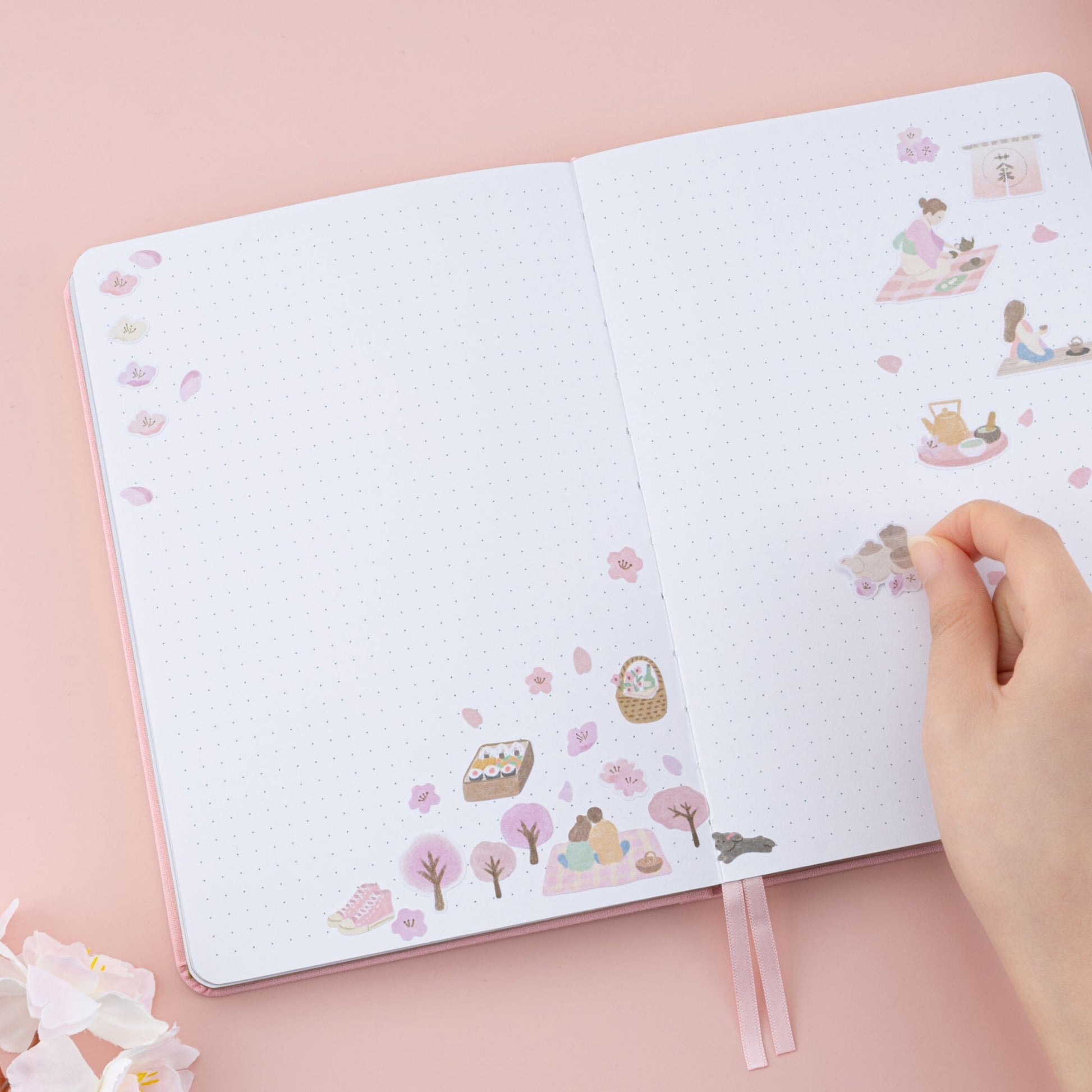 This set has 5 beautiful sticker sheets including: 2x cherry blossom petal sticker sheets, 3x different Japanese spring picnic elements sticker sheets (92 x 150mm).