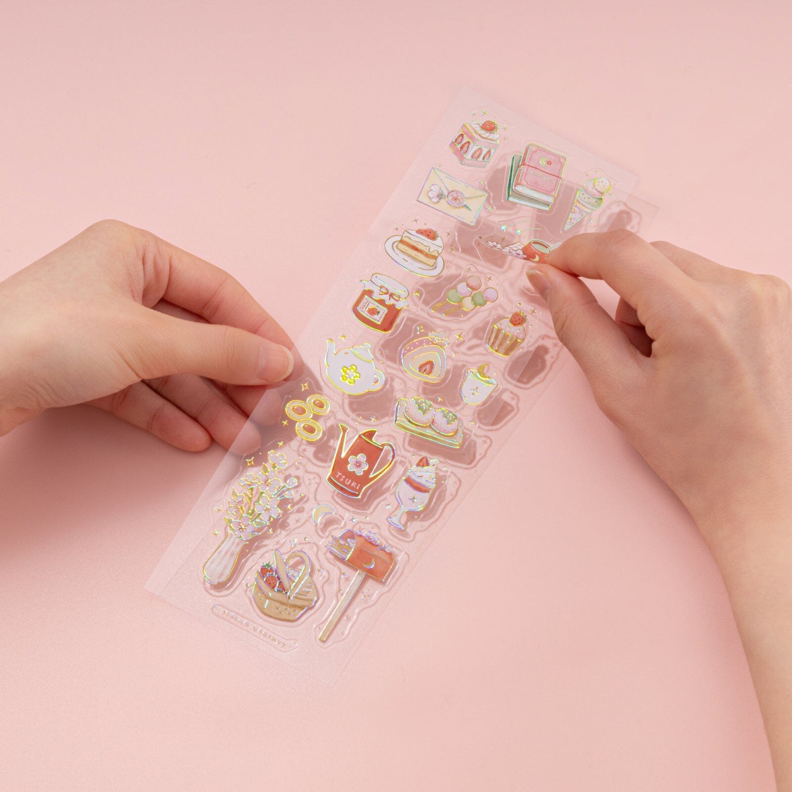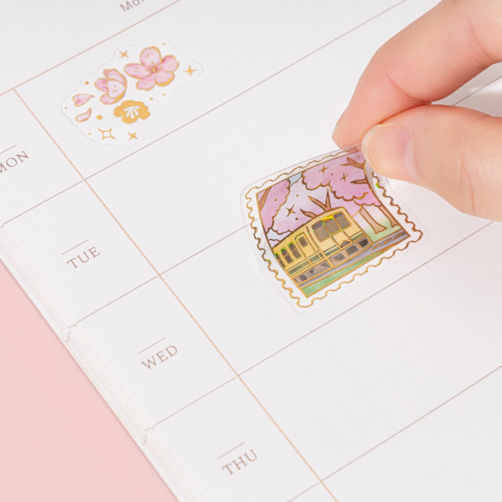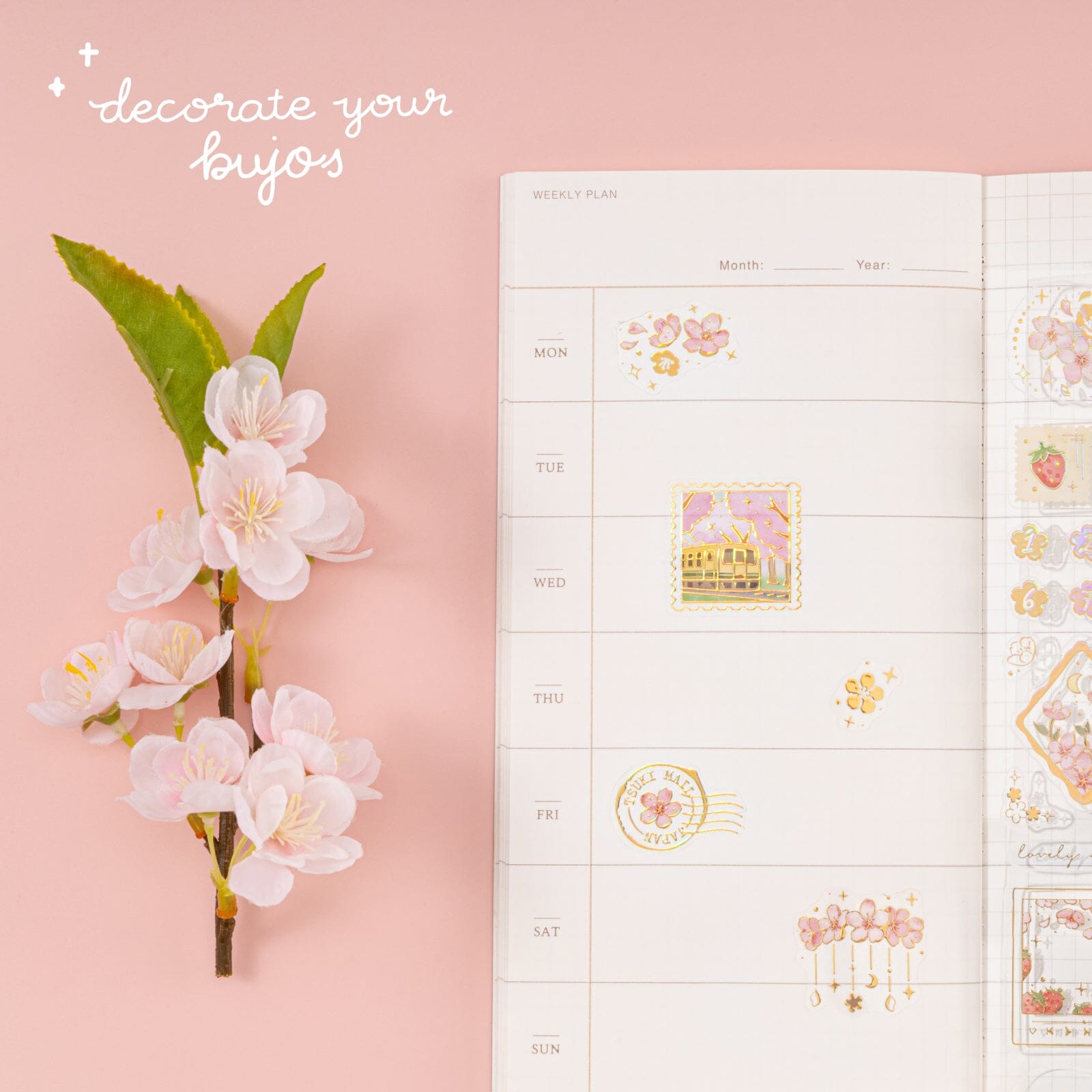 Tsuki ‘Sakura Friends’ 3D Holo Foil PET sticker sheets are perfect for decorating your penpal letters, bullet journals, scrapbooks and junk journals with adorable cherry blossom-themed elements perfect for a sakura season picnic.