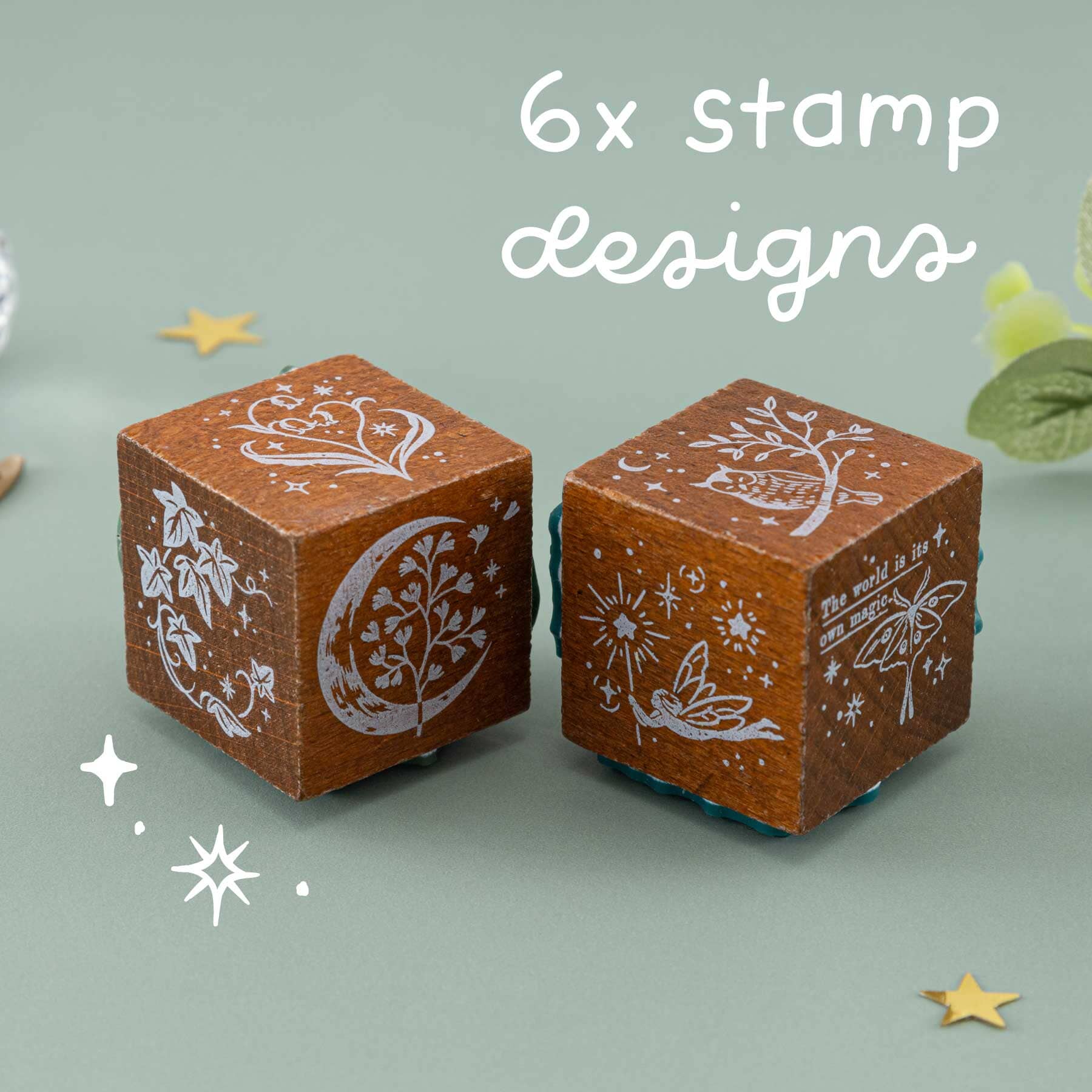 - 2x dice stamps with 6 stamp designs in total