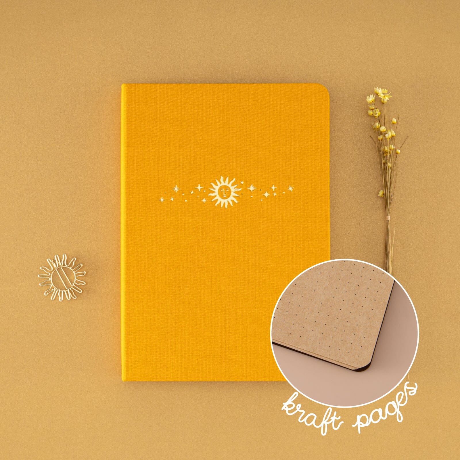Use the ultra-thick kraft dot grid notebook paper to add a vintage aesthetic feel to your bullet journal spreads! Inspired by the beautiful sun and the magic it provides, this exclusive Tsuki kraft paper edition of our Sunlit Mystery journal make for the perfect magical summer scrapbook.