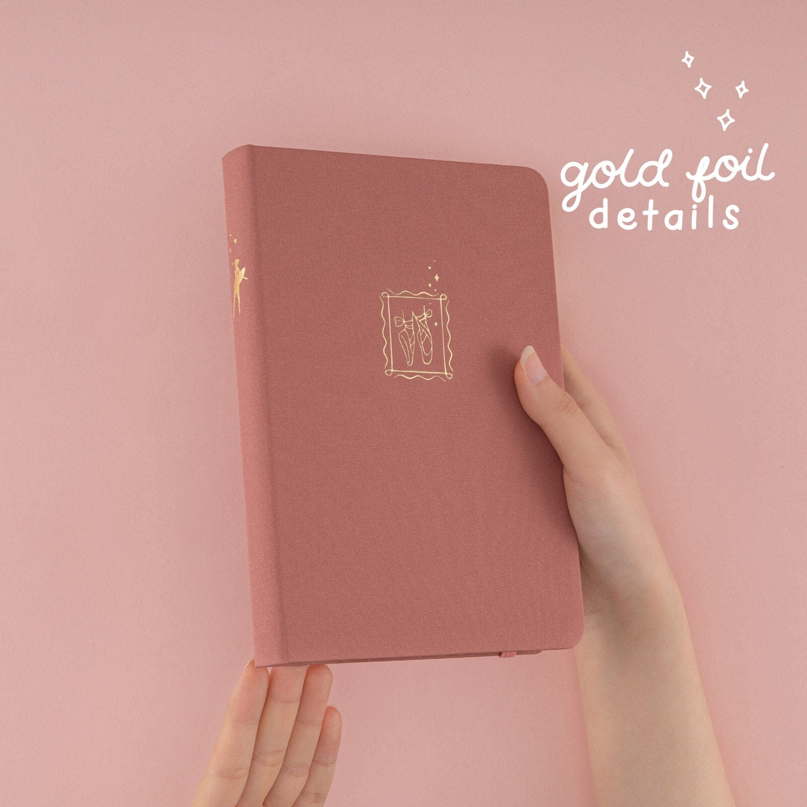 Inspired by the elegant balletcore aesthetic! Wrapped in a beautiful pink fabric cover + decorated with an adorable gold foil ballerina flats + filled with our signature bright white dot grid notebook paper.