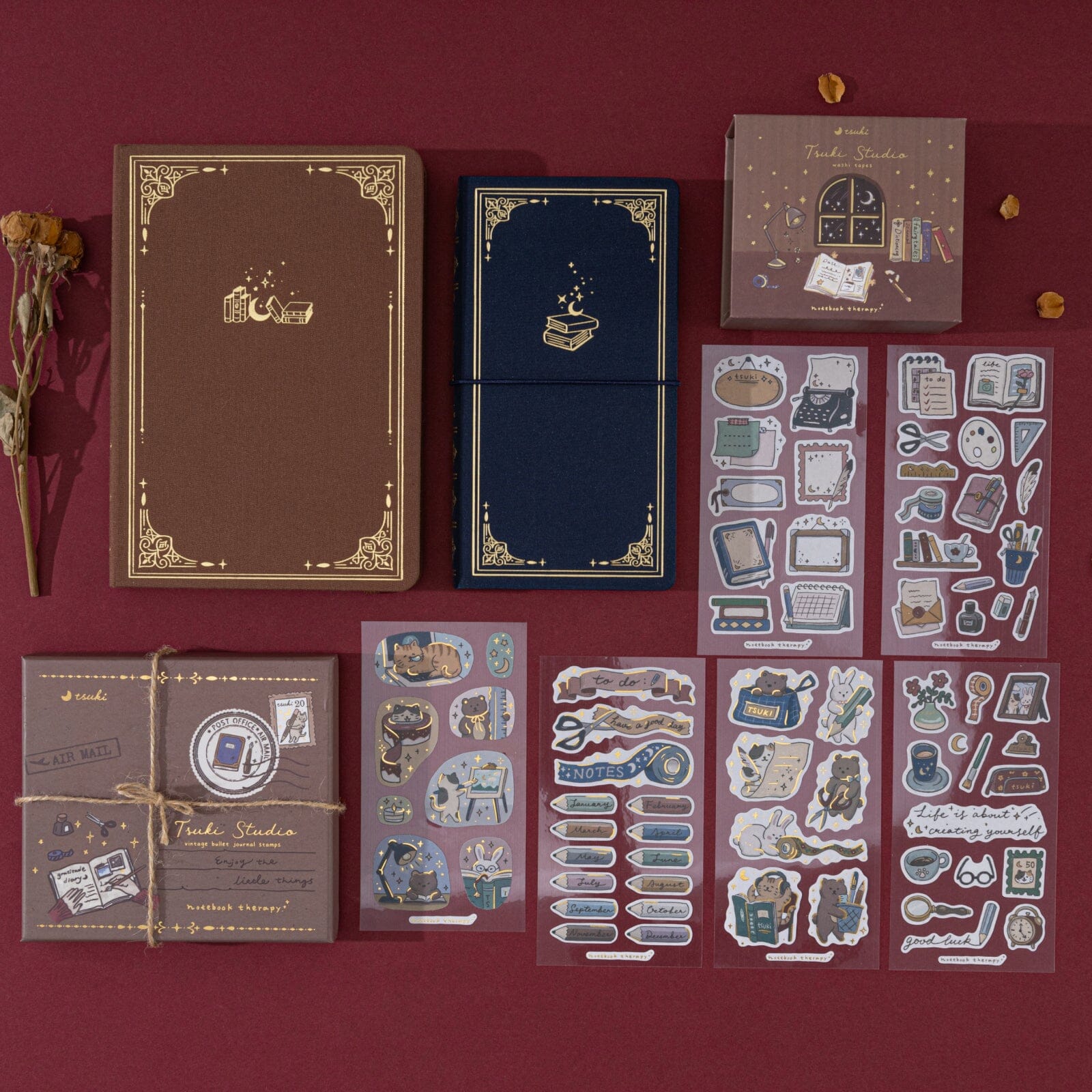Add a touch of vintage stationery elements to your penpal letters, bullet journals, scrapbooks and junk journals. This Tsuki ‘Tsuki Studio’ washi sticker set has 6 beautiful sticker sheets featuring gold foil details. Perfect for a dark/light academia aesthetic (8 x 15cm).