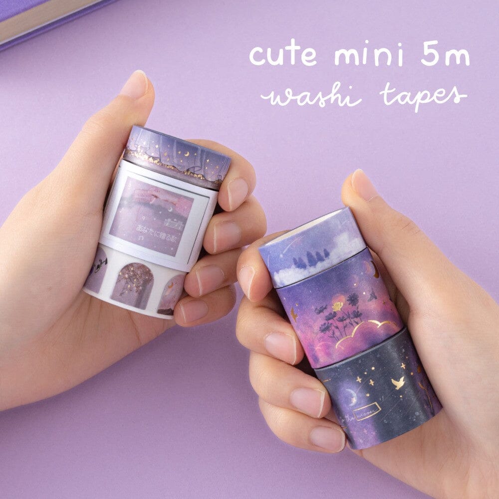 - 6x Washi Tapes - 5m length: 2x 30mm washi tape with foil details, 1x 30mm perforated matte transparent tape, 1x 18mm sticker tape with foil details, 1x 15mm CMYK tape, 1x 12mm PET foil tape with foil details