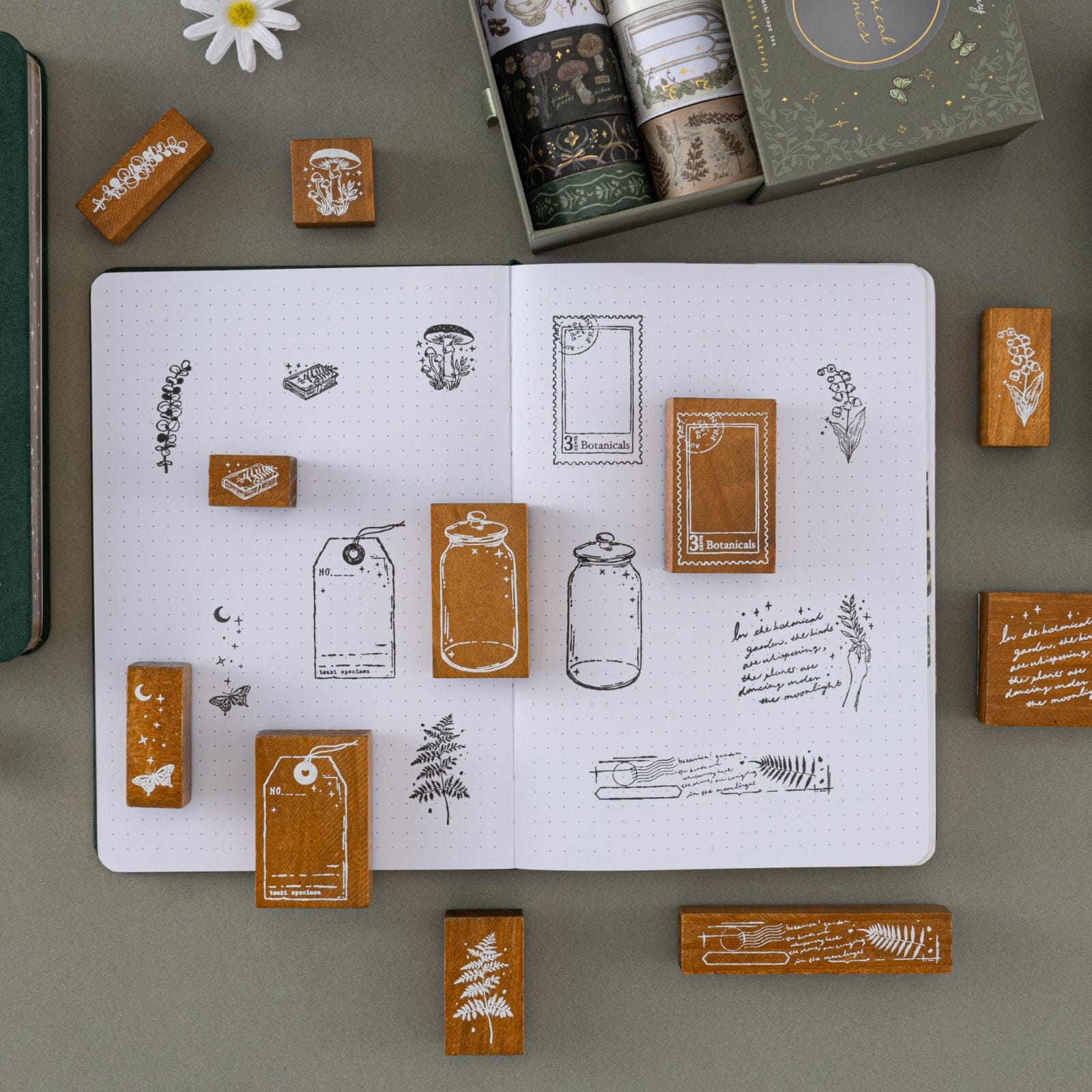 This unique wooden stamp set features 11 nature and woodland-inspired designs, perfect for adding an earthy, whimsical touch to your bullet journal spreads. For a complete botanical aesthetic, pair it with any items from our special tsuki anniversary release, Whimsical Botanics Collection.